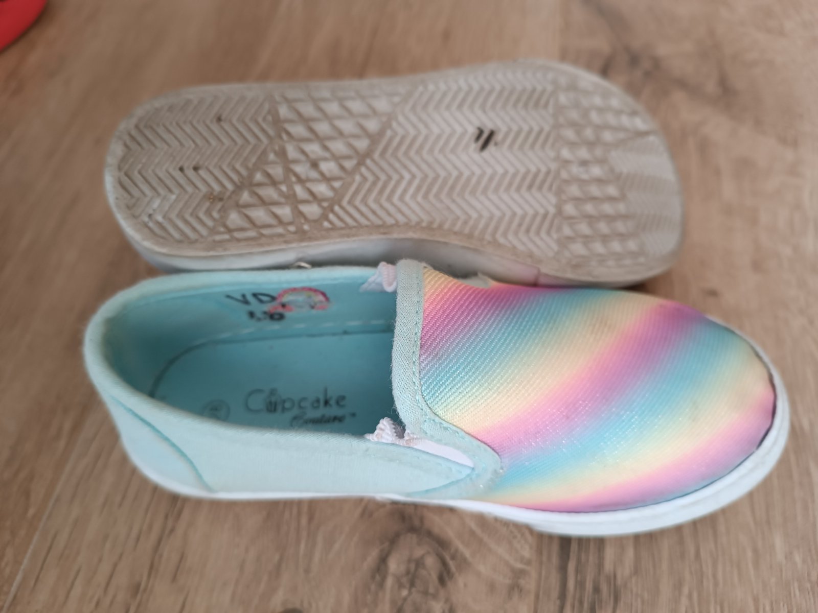 Slip-on topánocky, velmi lahko a rychlo sa obúvajú, dcerka ich nosila na striedacku s inými asi 2 mesiace. Všetko nafotené. Sú čisté a vyprate. VD 18,5cm