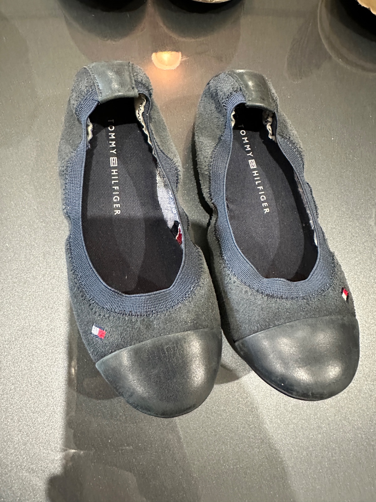 Balerínky Tommy Hilfiger, dcéra mala 2x na nohe, semišove. Podľa mna trosku menšie na veľkosť 27. V prípade záujmu premeram