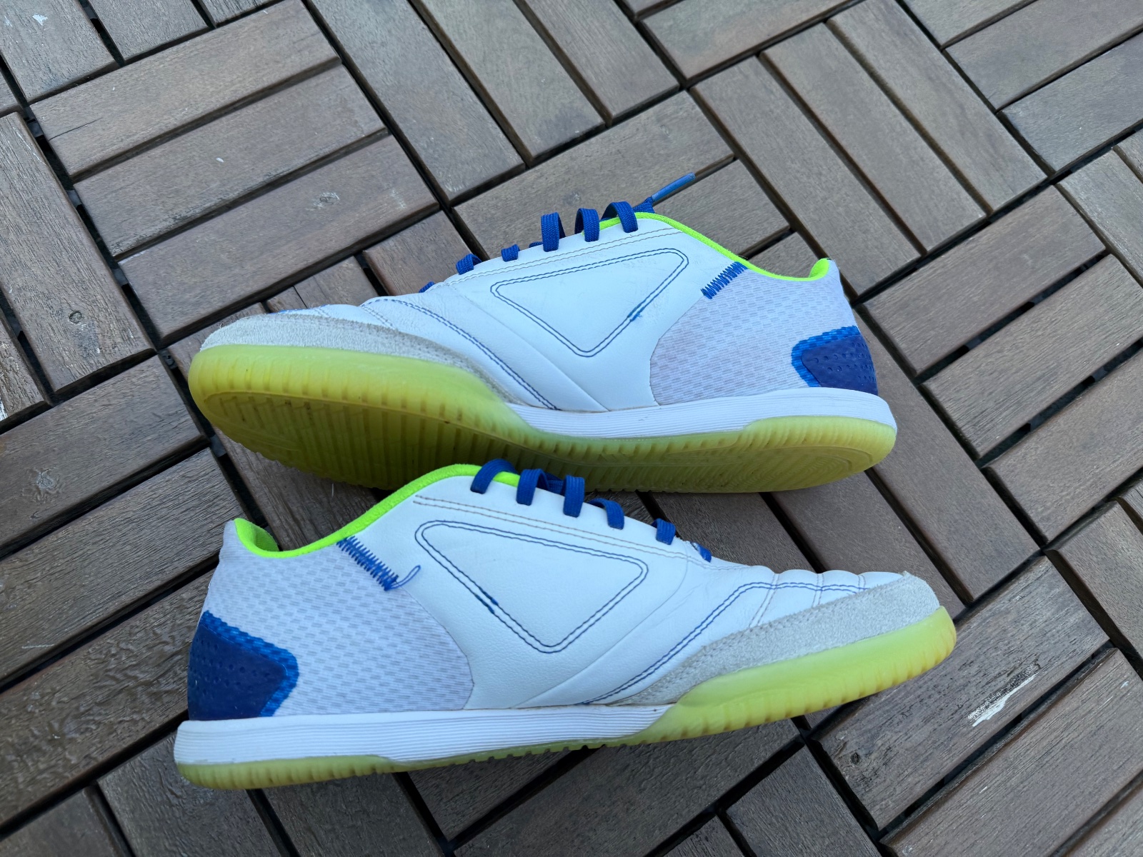 Nosené chvíľu - rýchlo vyrastené. Sú kvalitné, mäkké, ľahké, nosené na hodinách telesnej výchovy, vo veľmi dobrom stave. K dispozícii aj 2. pár šnúrok. Veľkosť 42, takže zakúpené v pôvodnej dospeláckej cene.