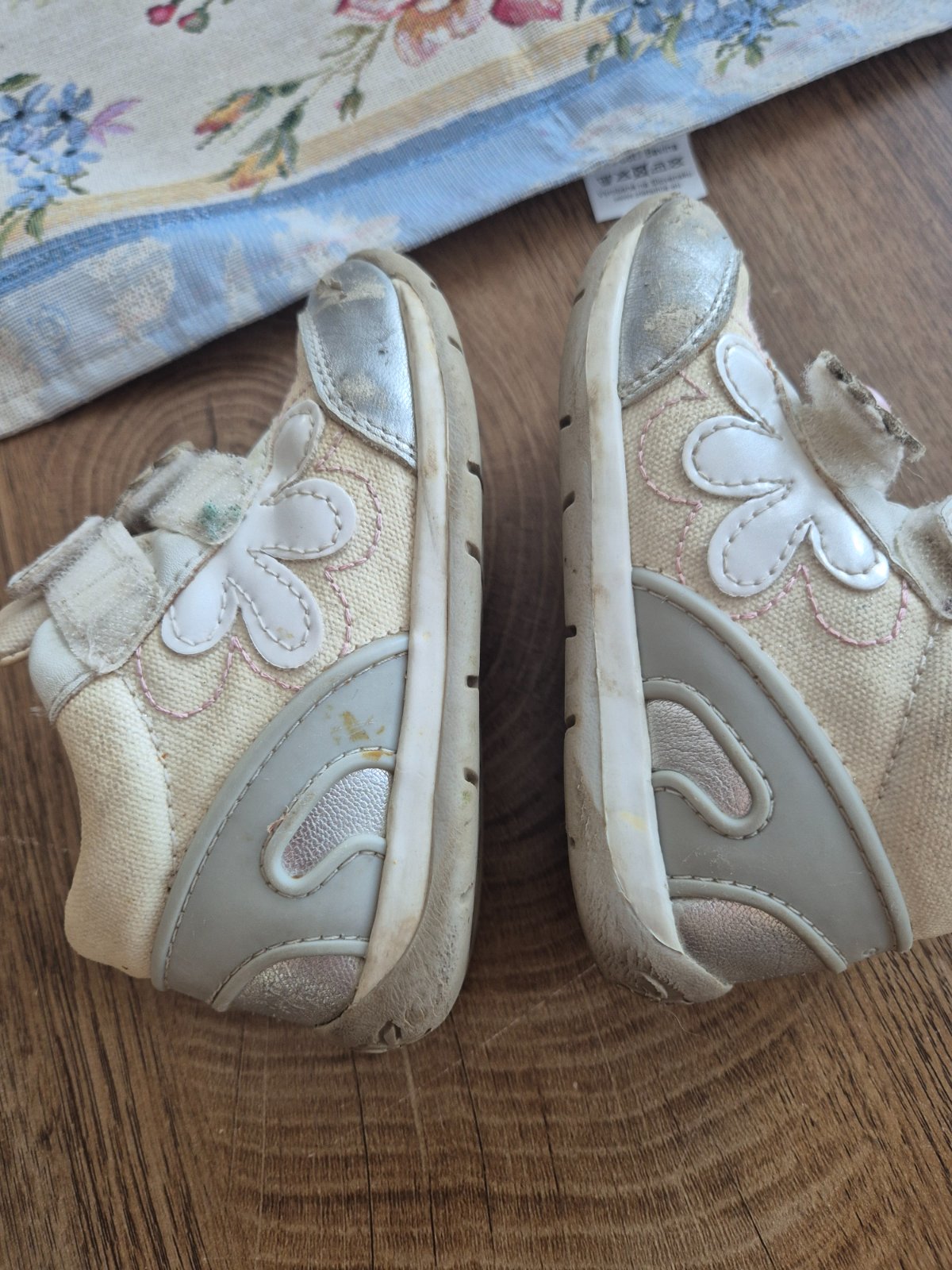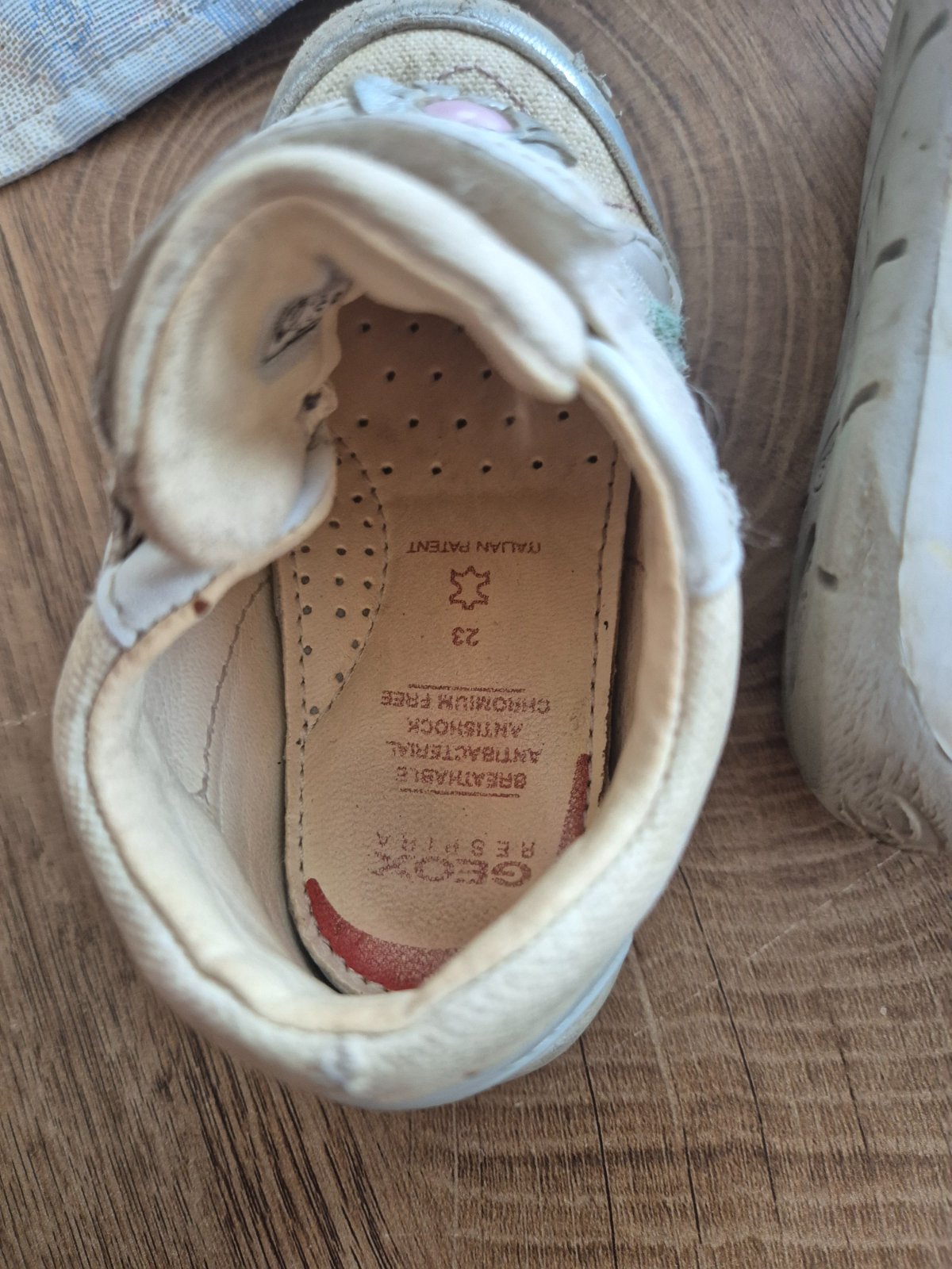 plátené, po jednom dieťati, špičky gumenne, žiadne poškodenia iba nápis geox je mierne ošúchaný