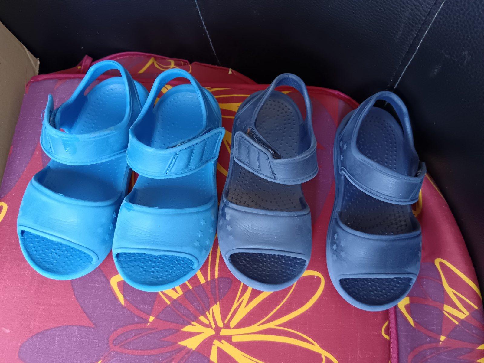 2x sandále. Používane v skolke ako prezuvky. Blede velk 29, tmavé velk 28, cena spolu 2e.