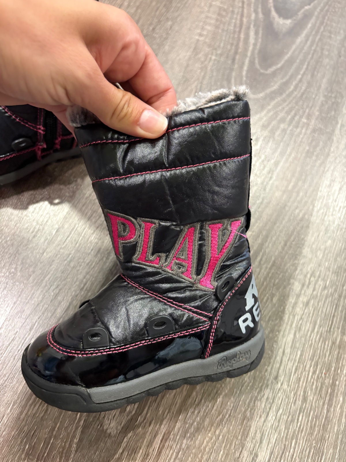 010.Replay štylove dievcenske zimne čižmy vo velkosti 22, zapinanie zboku na zips,vonkajsia dlzka je 16cm.Super stav…vo vnutri teplucke