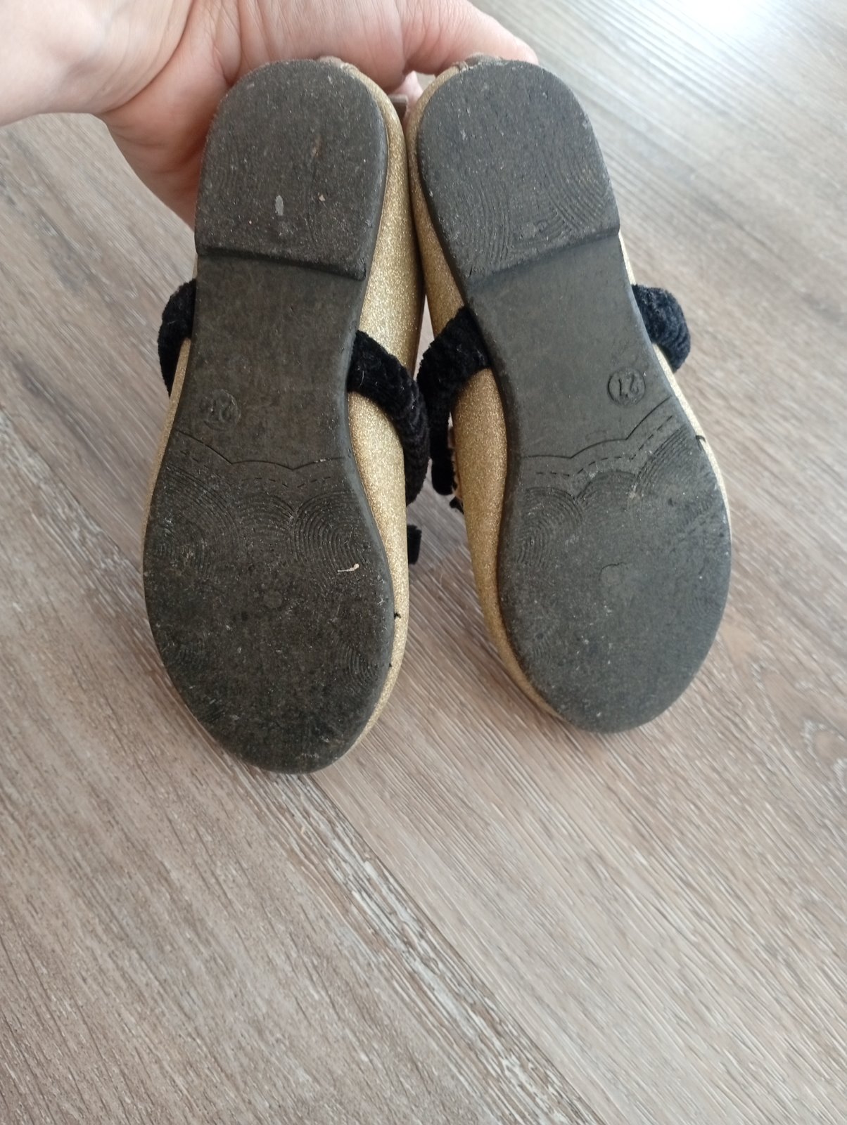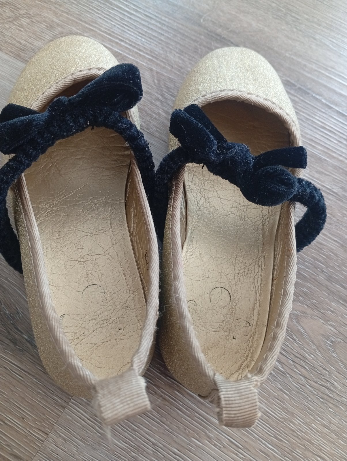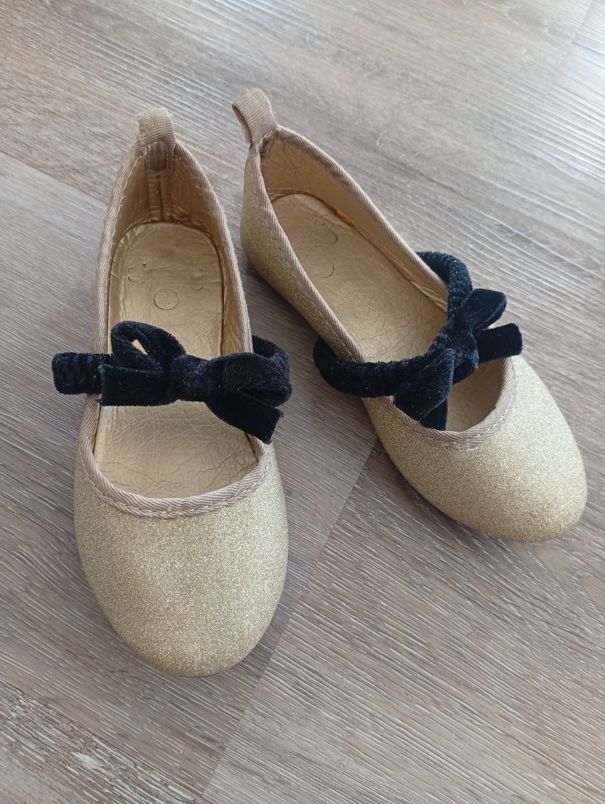 Trblietave zlate balerinky, noseny stav vid.foto. Este posluzia. 17cm vnutro.