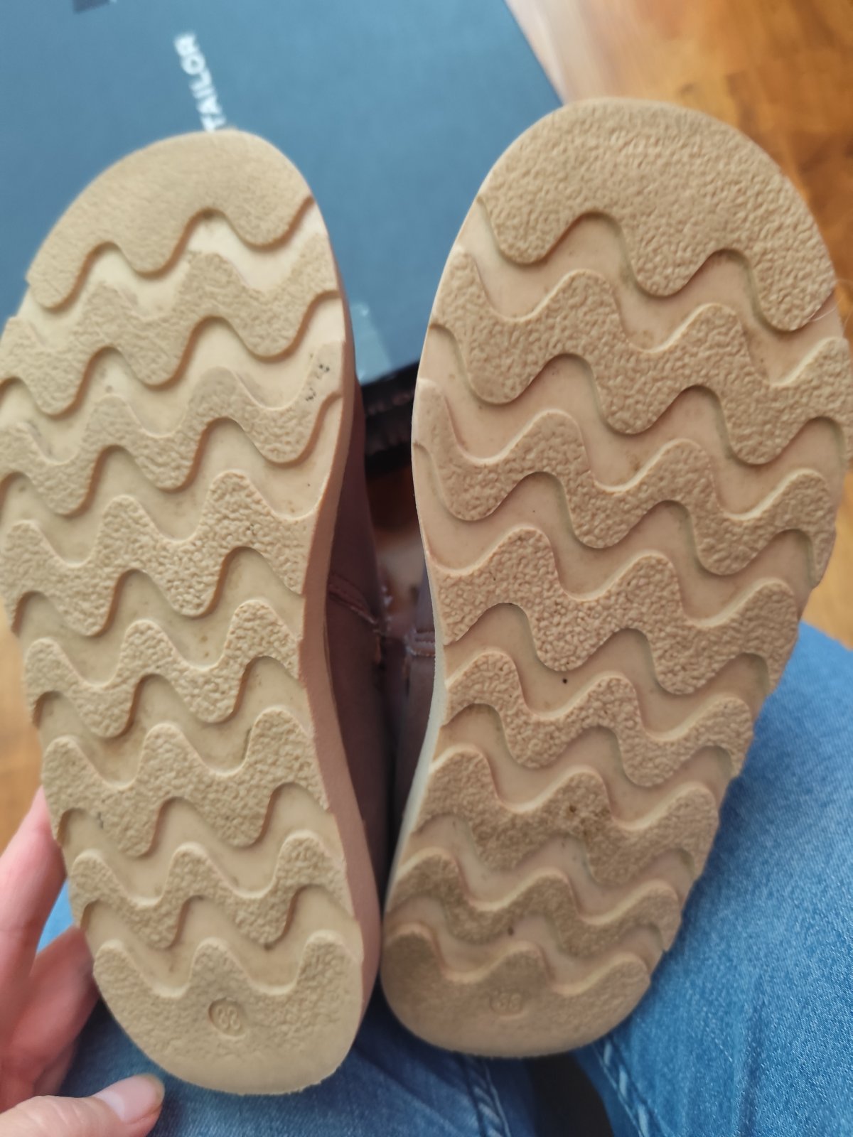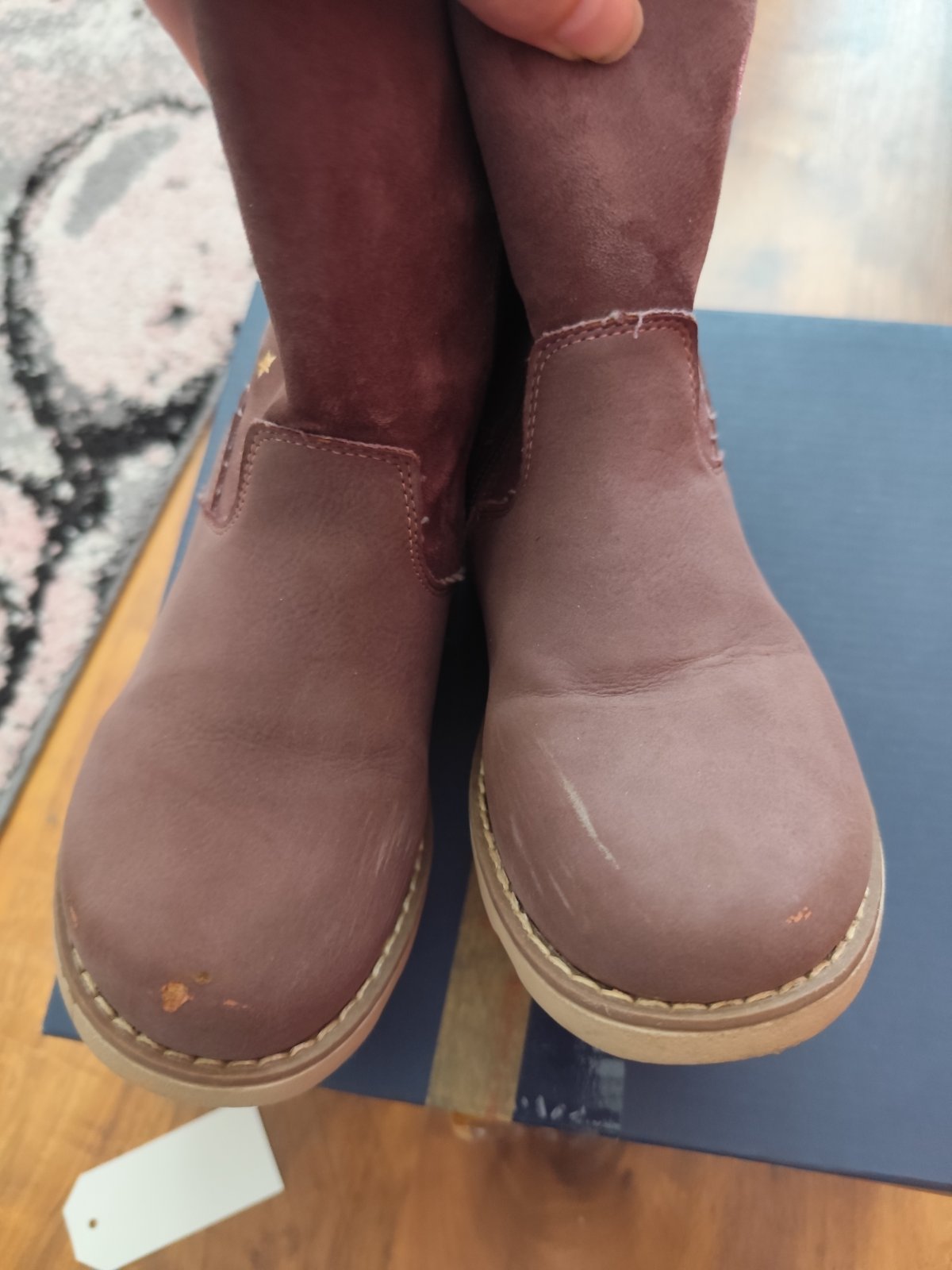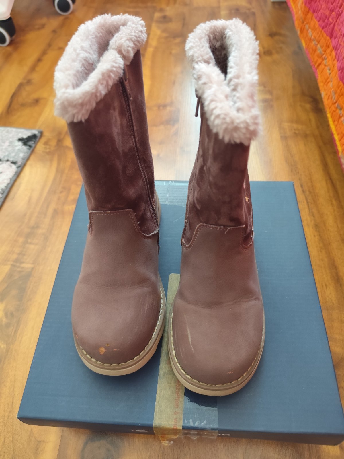 Predam nepremokave cizmy, vnutorna dlzka 21,5-22,0 cm. Cizmicky su vpredu okopane, vid foto. Inak stav ciziwm je velmi dobry, nosene parkrat, vid podrazka.Na boku svietia.