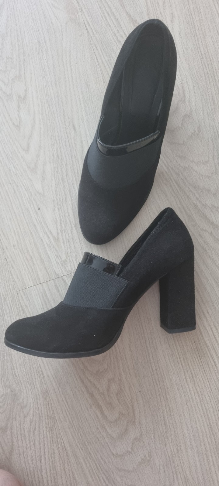 Krasne topánky-lodičky, veľmi pohodlné, výška podpätku 9 cm. Čierny semiš. 100% stav