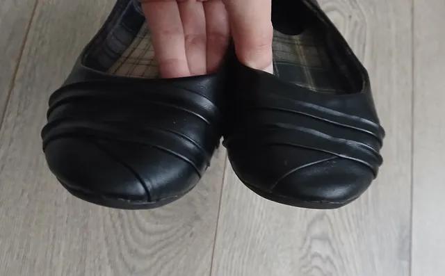 Balerinky vpredu čierne lakované, na boku sú strieborné, akoby látkové. Pekné, minimálne nosené.