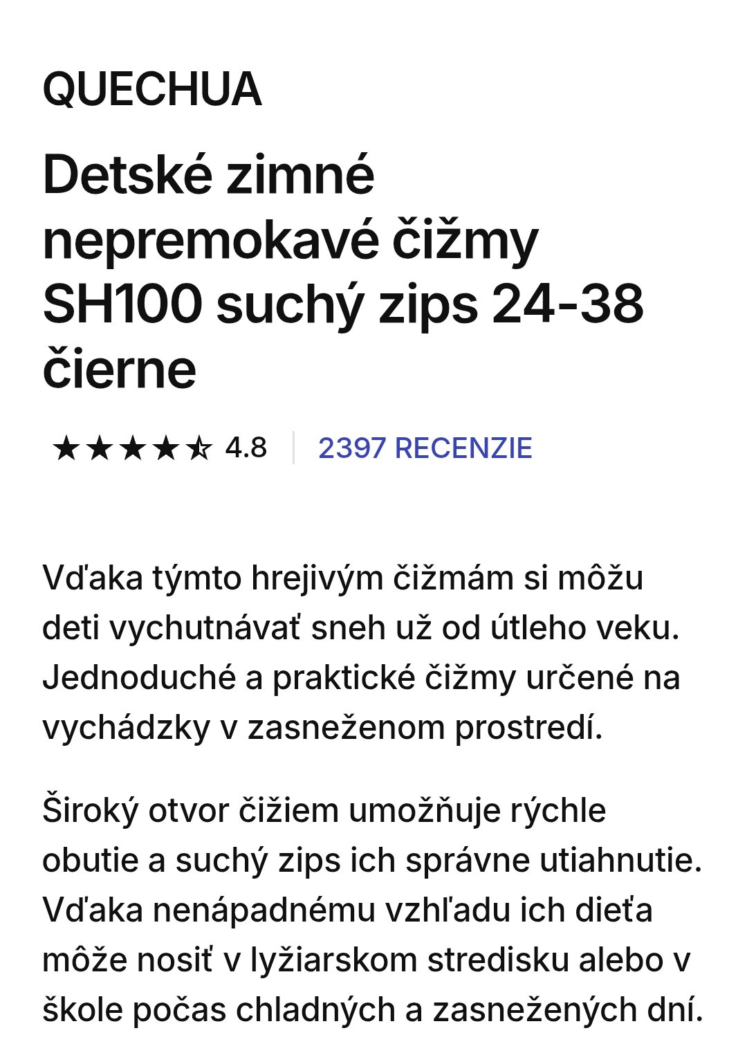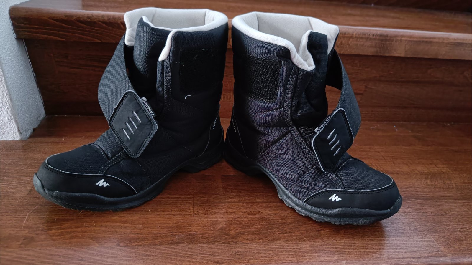 Používané snehule jednu sezónu. Bežné známky nosenia, bez poškodenia. Posledná foto info o výrobku od výrobcu - nepremokavé, protišmykové, vnútorná dĺžka 22,5 cm. Viac na stránke decathlonu.