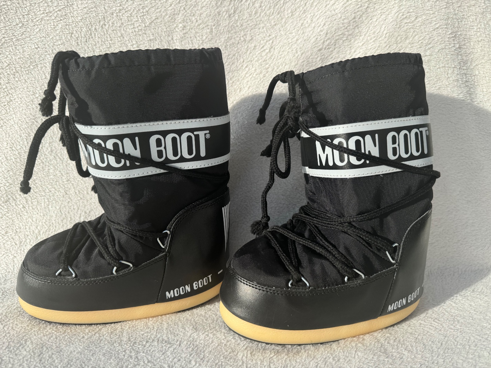Extra teplé značkové snehule "MOON BOOTS", originál talianska zn. TECNICA. Farba: čierna/black. Ako nové, pár krát obuté, absolútne zachovalé. Veľkosť: 27-30 = vnútorná dĺžka cca 16,7 - 18,7 cm. Vložka vo vnútri sa prispôsobí nožičke, vďaka čomu sú využiteľné aj na viac sezón. Vonkajšia dĺžka podrážky 23,5 cm, výška sáry 29,3 cm, horný priemer sáry 10 cm. Viem zohnať aj iné farby a veľkosti😉.