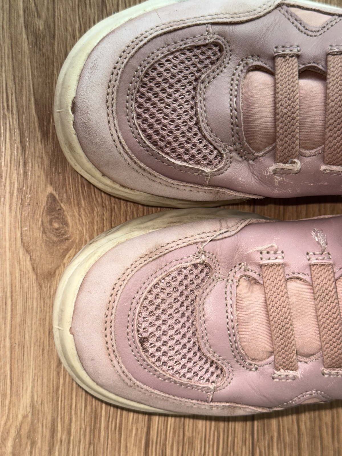 Nepremokave topanky, nosene celu jeseň a jar, takže nosenie vidnk, ale bez važnych poškodení, kuk všetky fotky, na užšie nožky odporučam , vložky su nove, naše nosili bez vložiek, preto odporučam skor na nožičku 30 alebo uzku nožičku