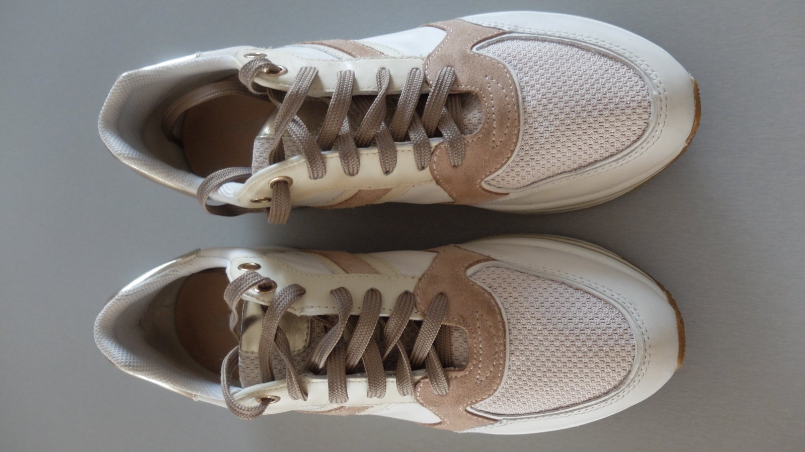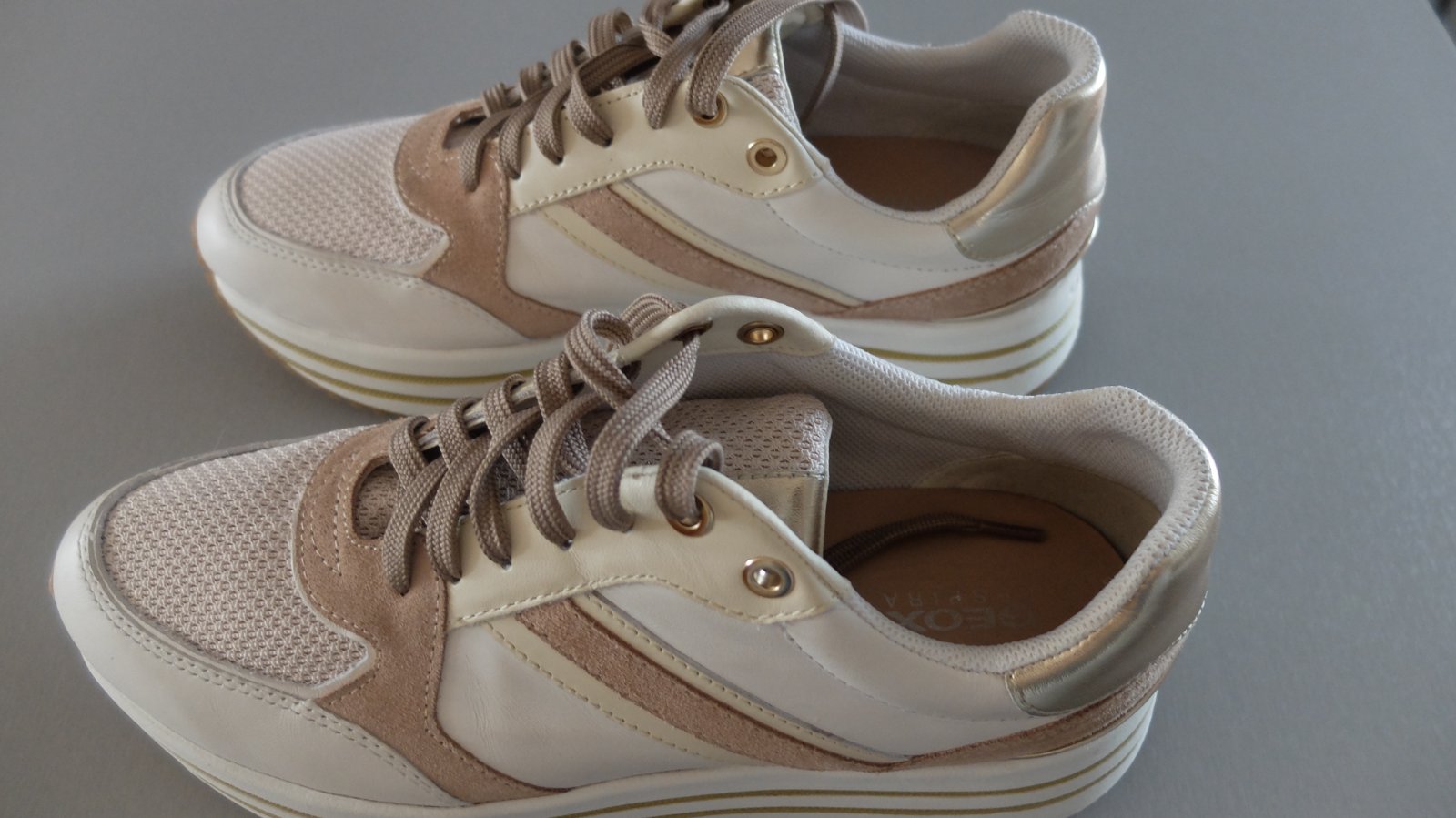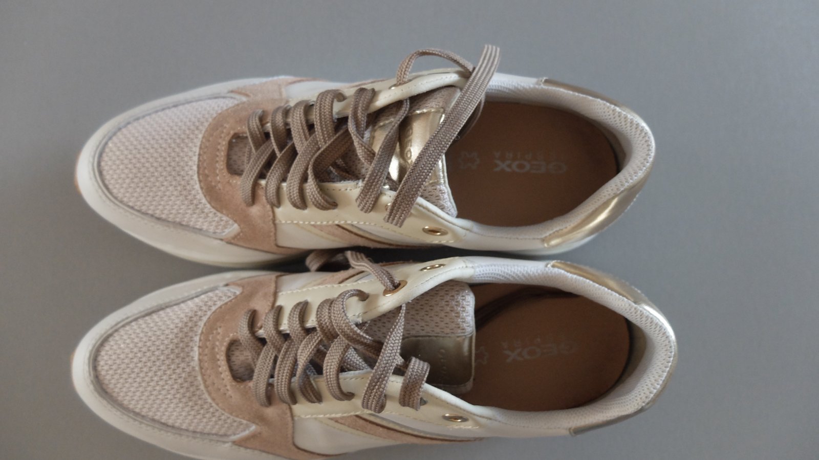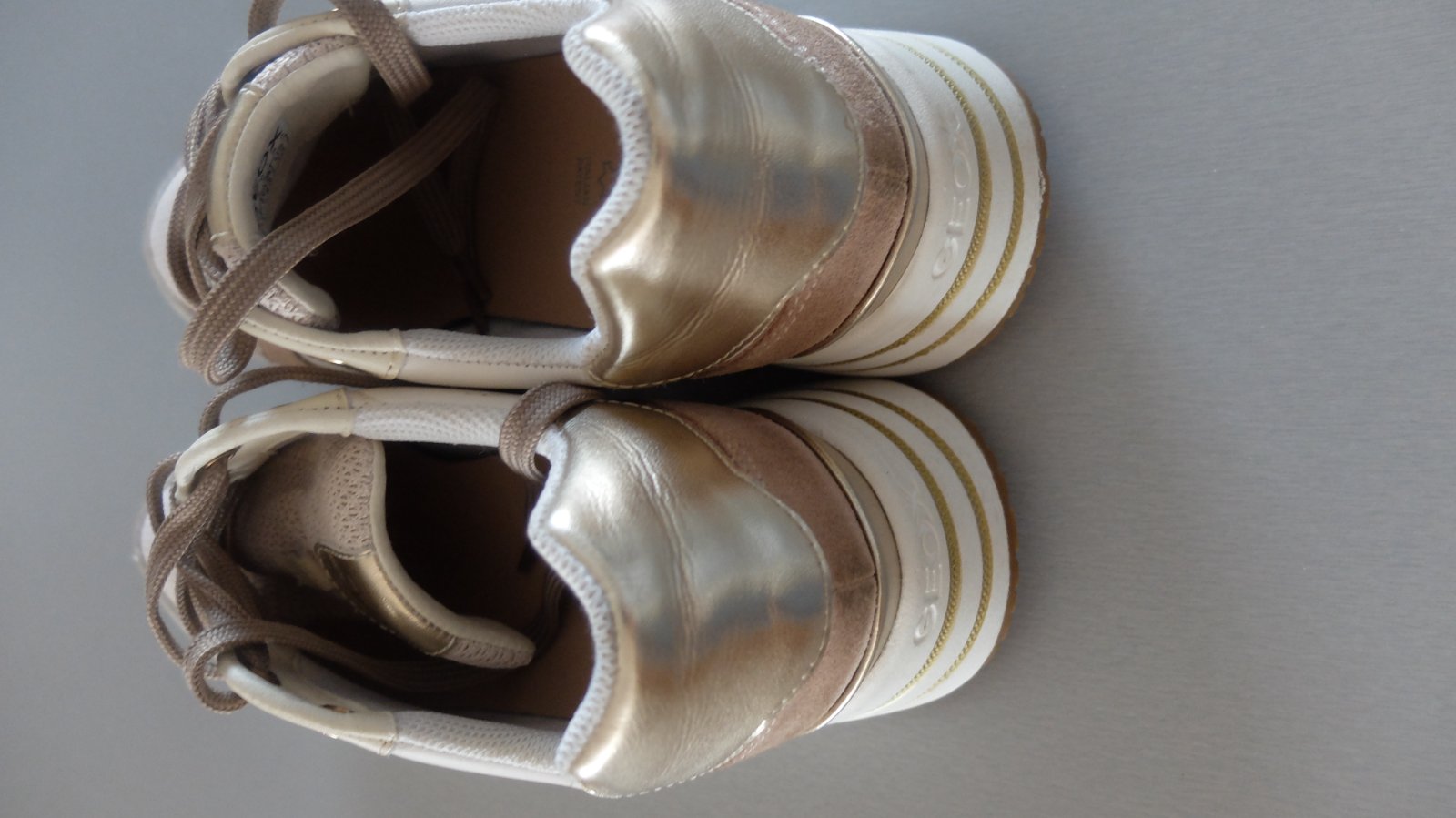 Krasne geox tenisky nikdy nenosene.vhodne ako darcek....velkost pisana 39 ale su vacsie zaradila som ich preto do 40.Vnut.dlzka uvadzana vyrobcom 26mm. Pov.cena 89.95