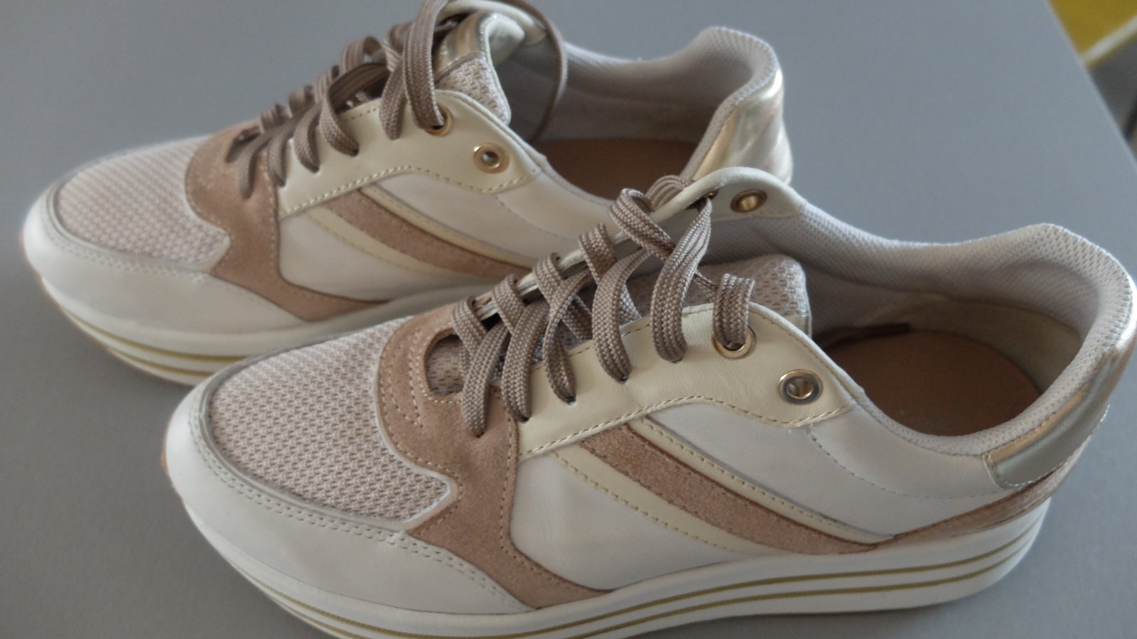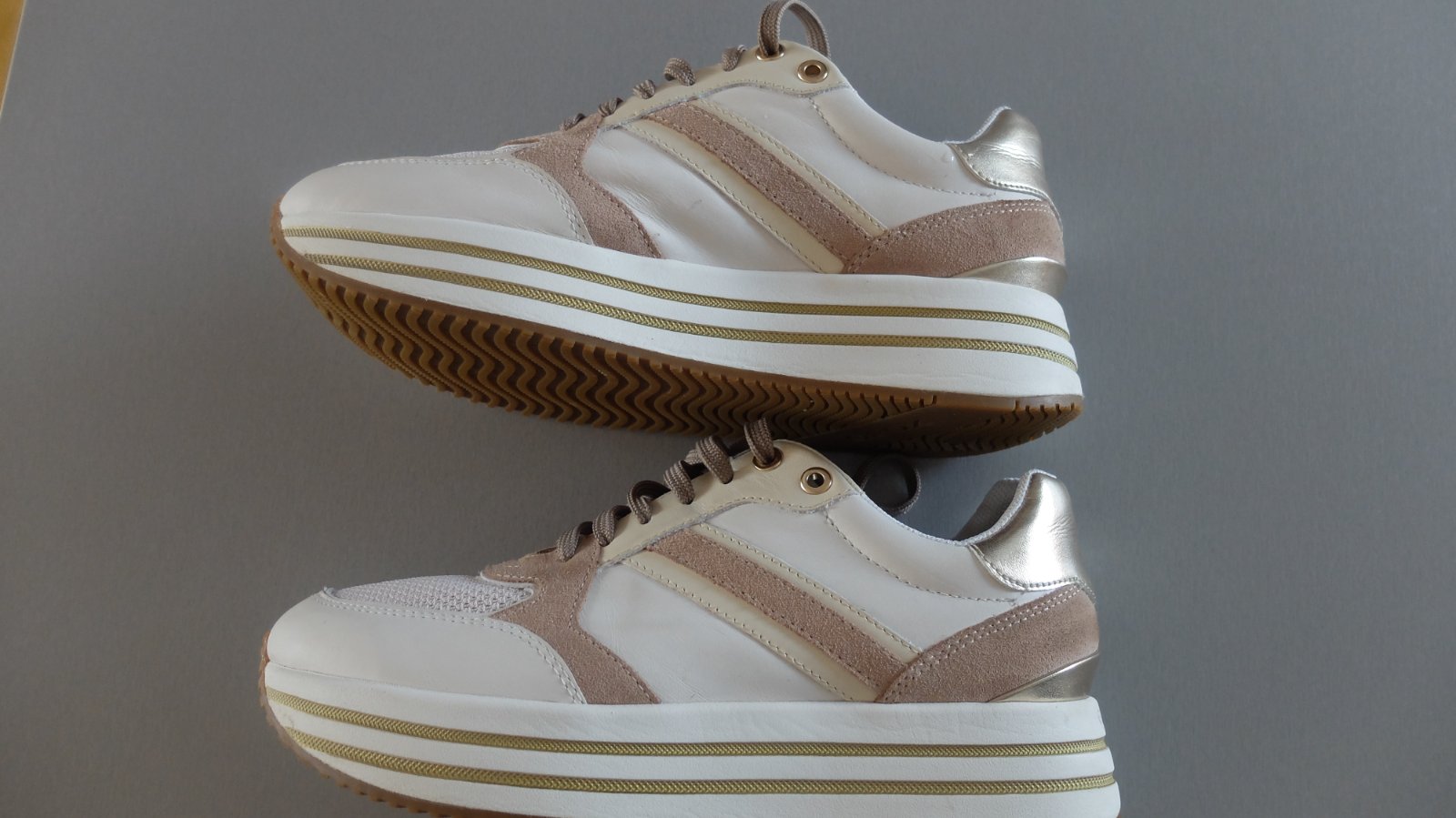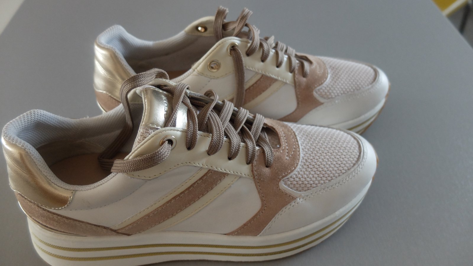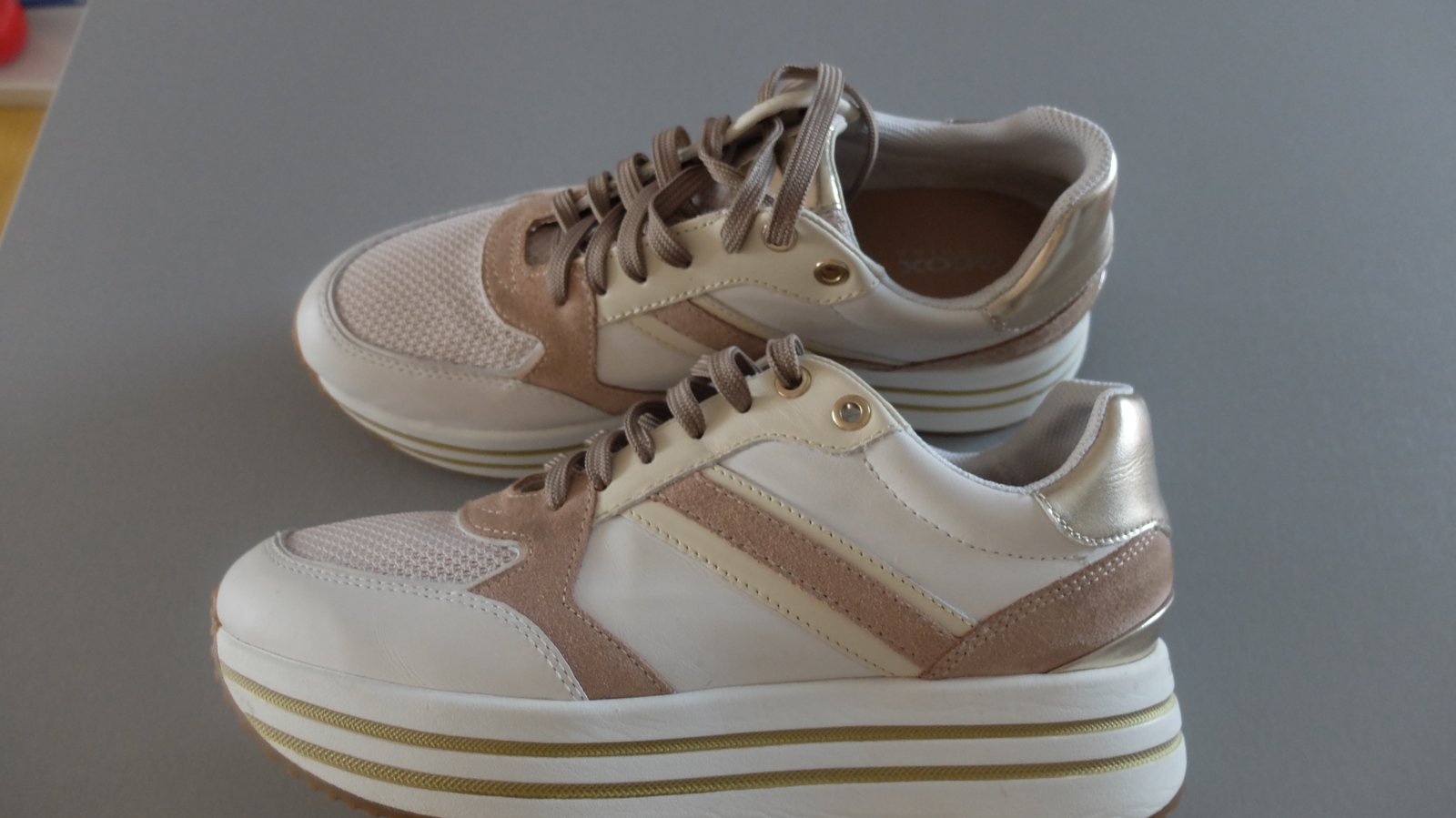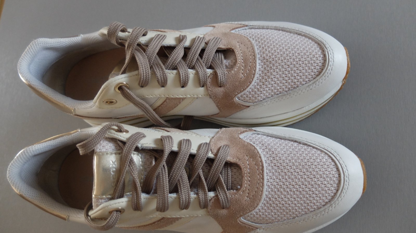 Krasne geox tenisky nikdy nenosene.vhodne ako darcek....velkost pisana 39 ale su vacsie zaradila som ich preto do 40.Vnut.dlzka uvadzana vyrobcom 26mm. Pov.cena 89.95