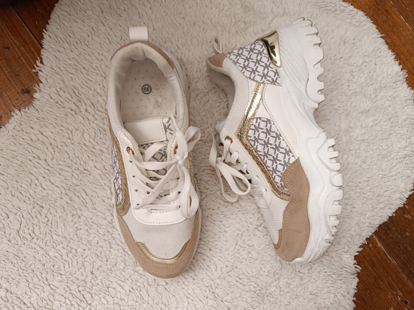 Pár krát obuté, sem tam jemná šmuha z nosenia.