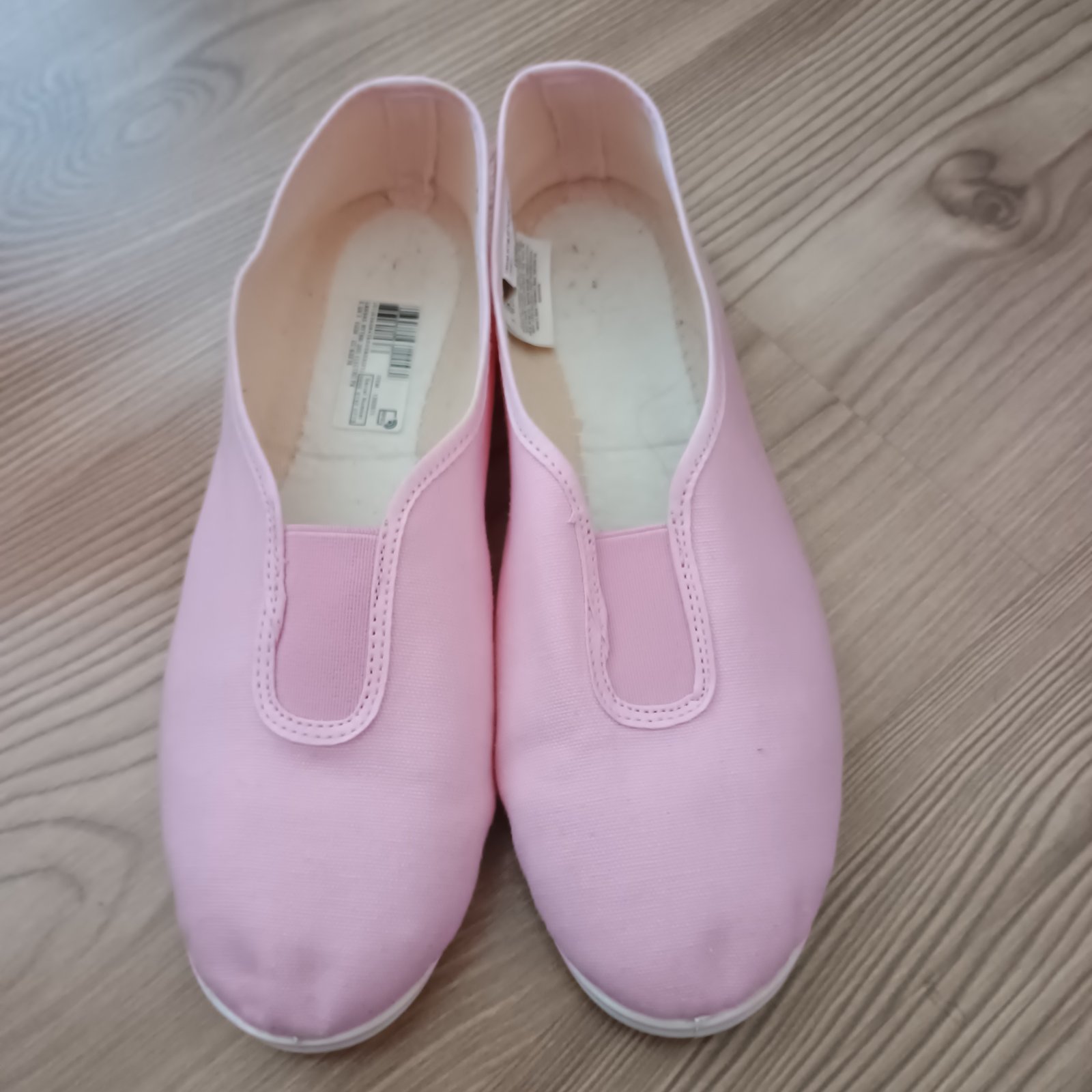 Malo nosene, asi 4krat na TV, veľmi dobrý stav. Meno napísané zvnútra. Su to látkové cvičky, ktoré sa jednoducho obúvajú, majú izolujúcu podrážku a sú vhodné na športové aktivity v interiéri aj exteriéri.