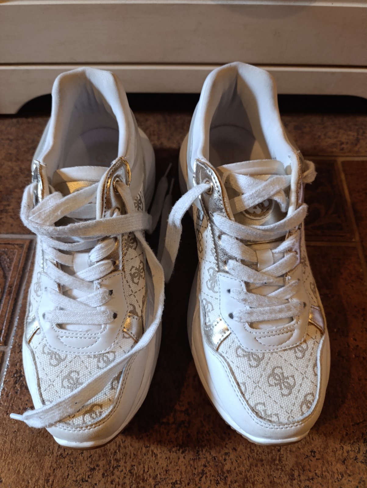 Nosené kožené tenisky Guess veľkosť 37, vnútorná stielka kožená, zlaté aplikácie.
