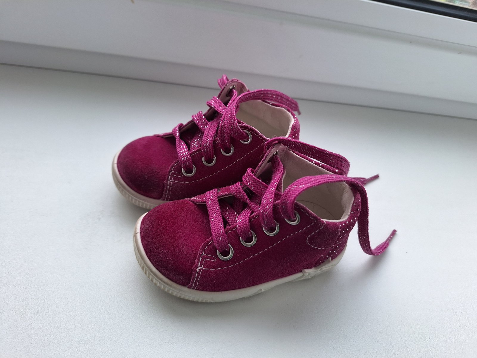 Predám tieto krásne dievčenské topánočky, farba je taká malinová-fuchsiová. Obuté iba 2x v kočíku, malá ešte nechodila. Tá malinová farba má strieborné trblietky takže sa pekne lesknú na slniečku. ...