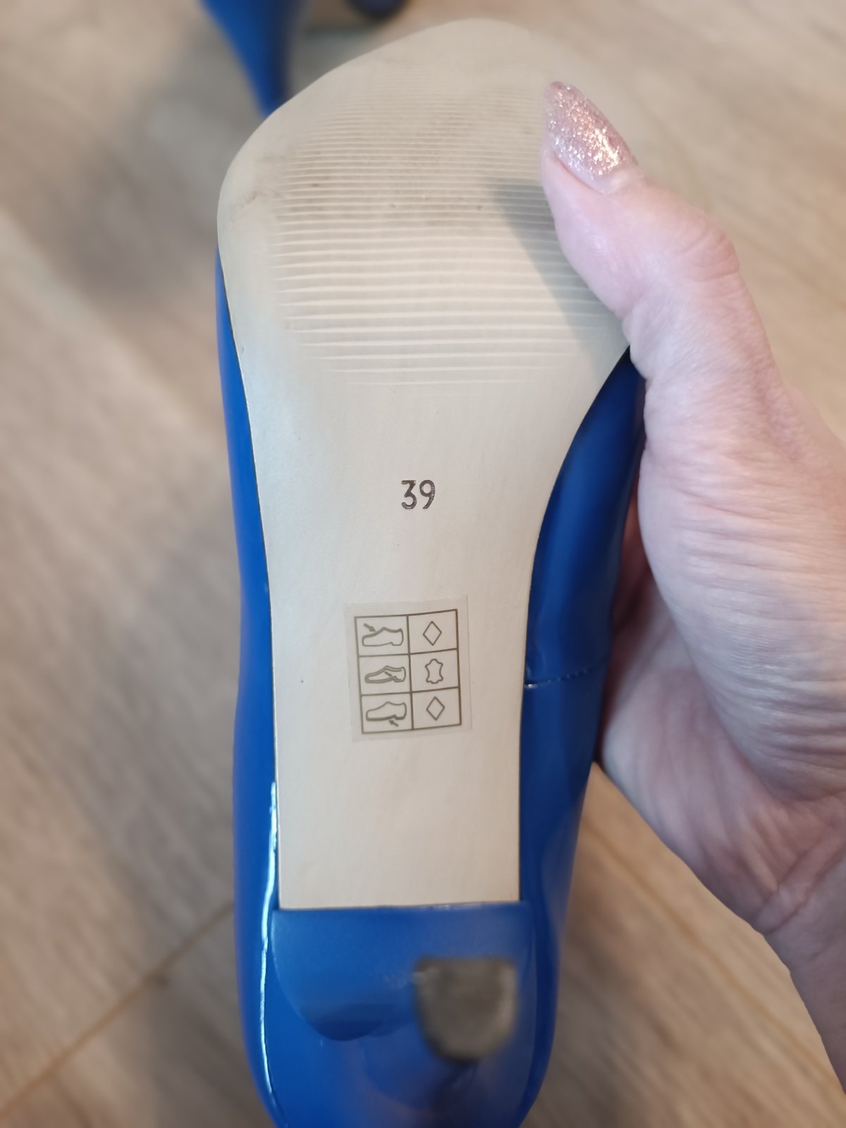 Bez poškodenia, jednoduché tmavomodre lodičky. Cena 10 eur a postovne