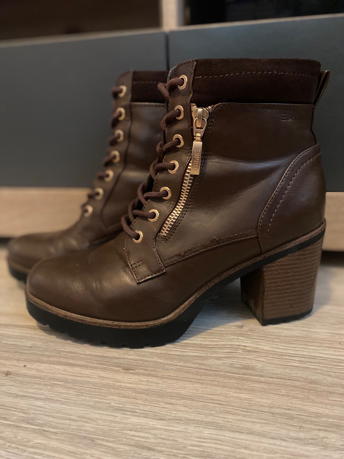 Kvalitné dámske topánky zn.Esprit - brúsená koža (z vnútornej strany topánok je zips), veľ.39, výška topánok je 20cm. Vnútorná dĺžka vložky je 25cm. Výborný, čistý stav. Cena 12Eur.