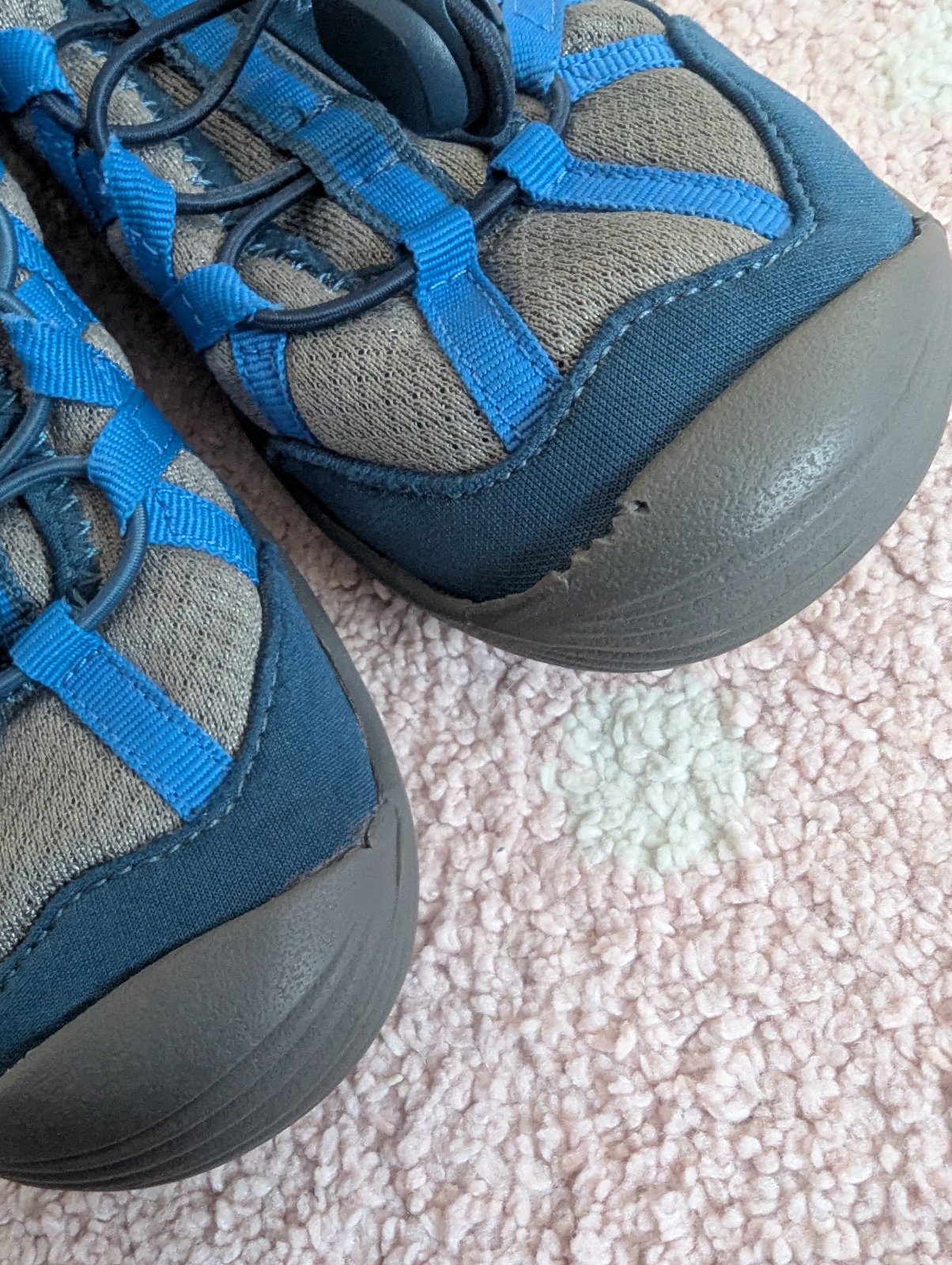 Stav ako na foto. Odzobnutý kúsok na palci a lem okolo nohy našitý nový (pôvodný sa začal párať).