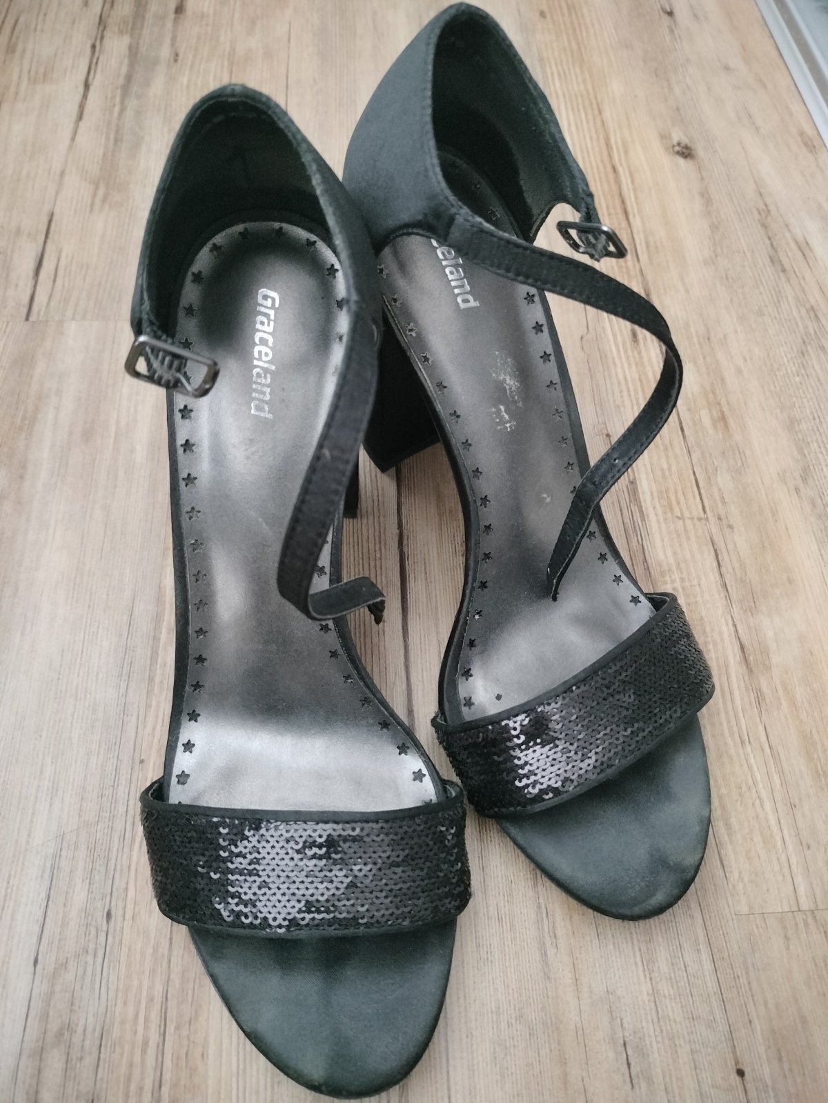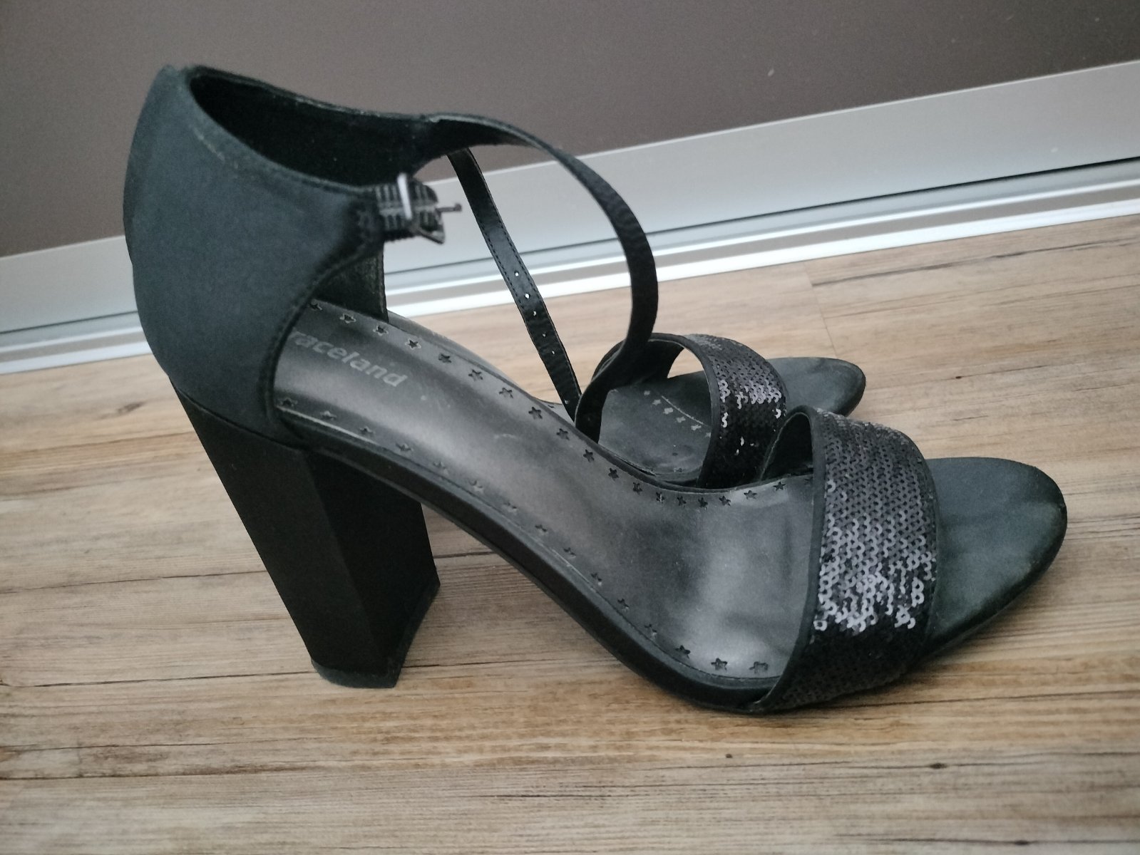 Sandále boli obuté iba párkrát na slávnostných udalostiach. Vďaka hrubšiemu opätku sú pohodlné, ak ste zvyknutí na vyšší podpätok.
