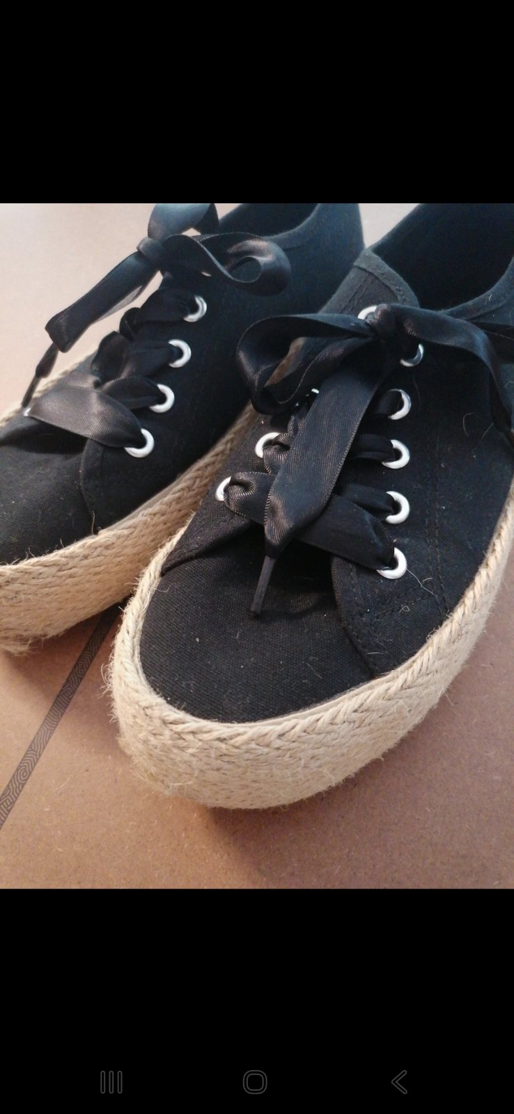 Uzasne platenky,espadrilky, tenisky na slamenej-jutovej platfotme. Maju satenove cierne snurky. Posobia luxusne 👍👍👍💯 kupovane v obuvi CCC, znacka Jenny Fairy.