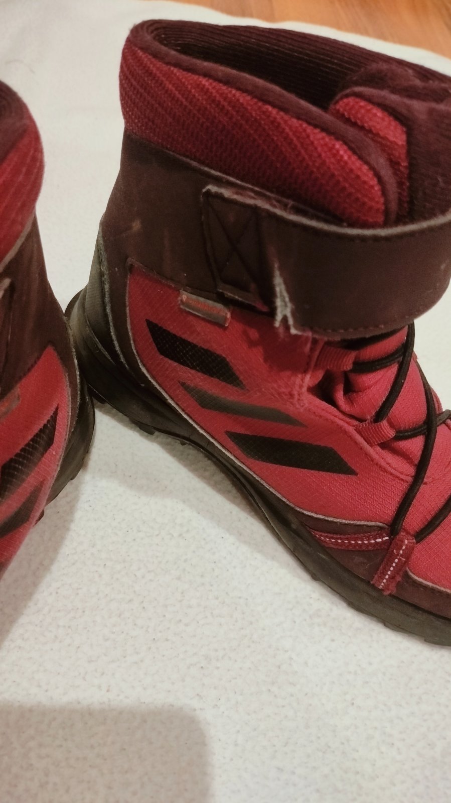 Nosené čižmičky ktoré sú v dobrom stave..Čižmy majú pri lepenie suchým zipsom troška odtrhnuté viď foto..Inak sú v poriadku..preto aj taká cena 20€ plus pošta veľkosť 33..