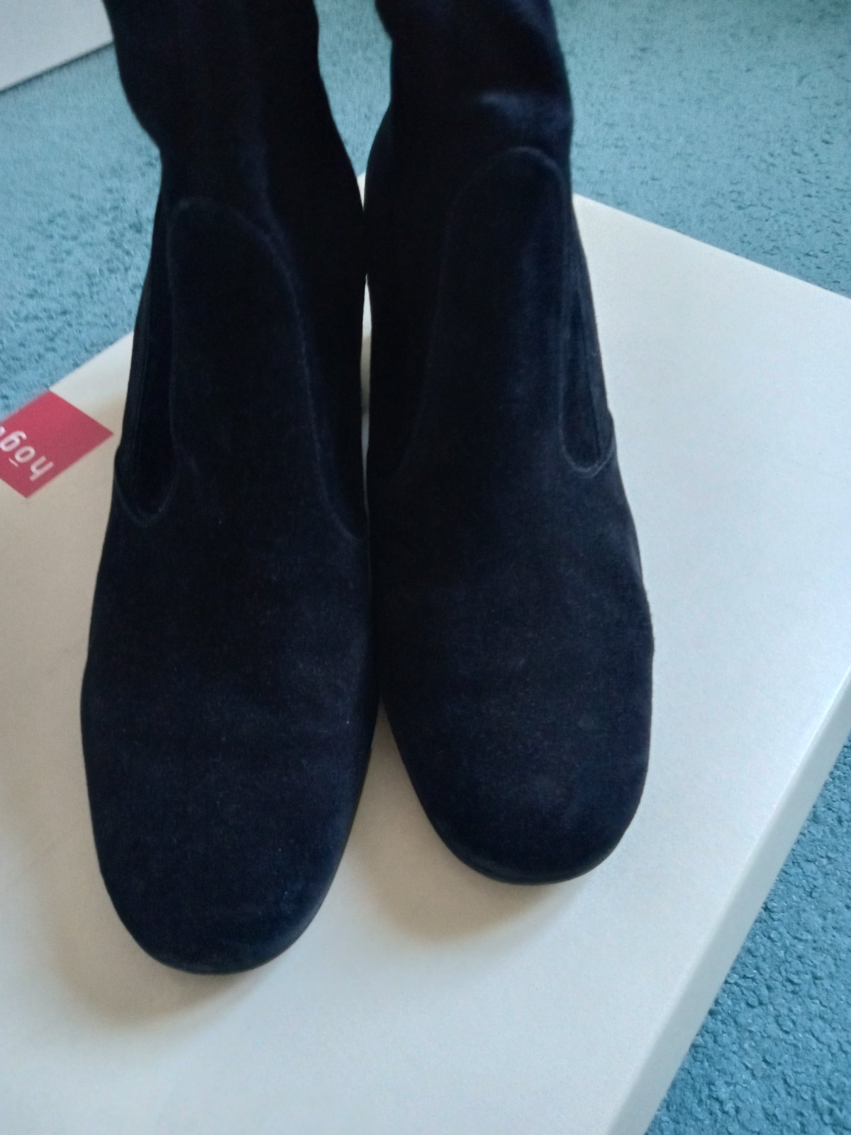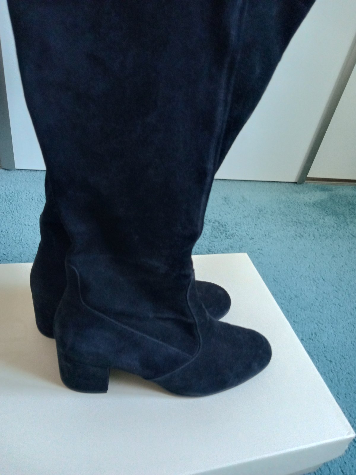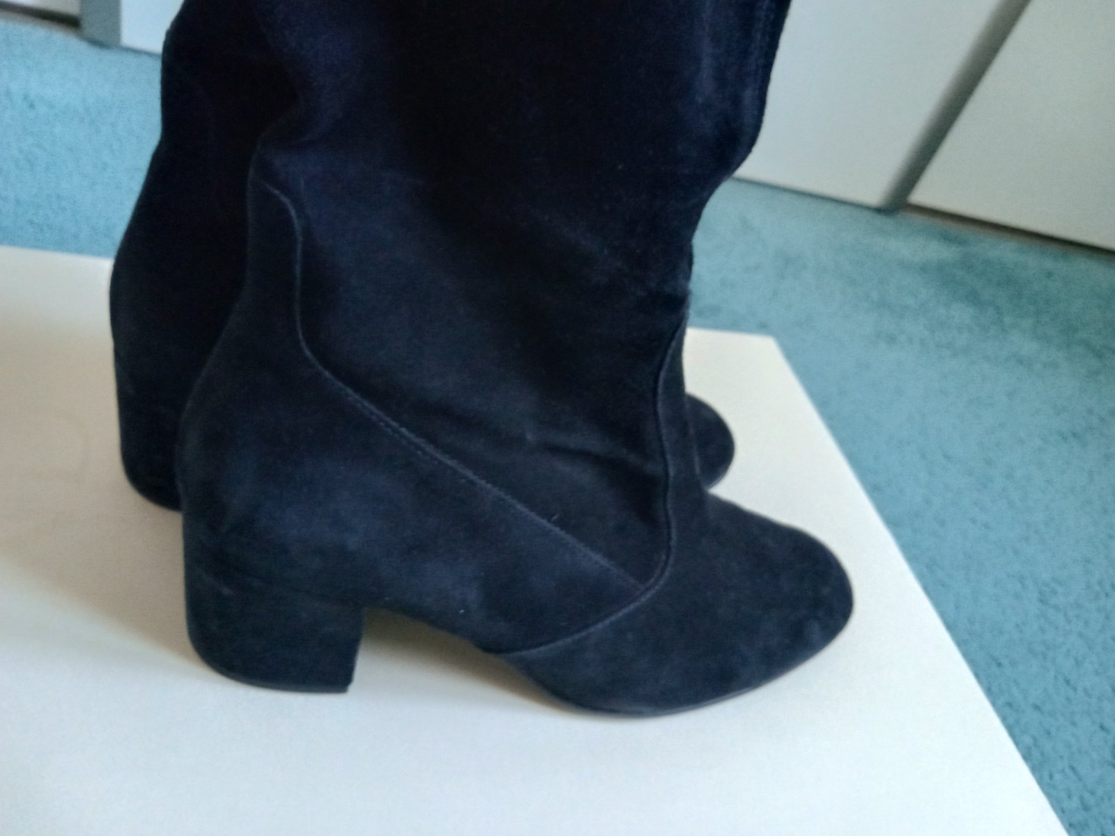 Semišové čižmy nad kolená, veľmi pohodlné a mäkké. Obuté 5x, 100% stav. Platforma 5,5cm a podpätok 14 cm. PC 59e