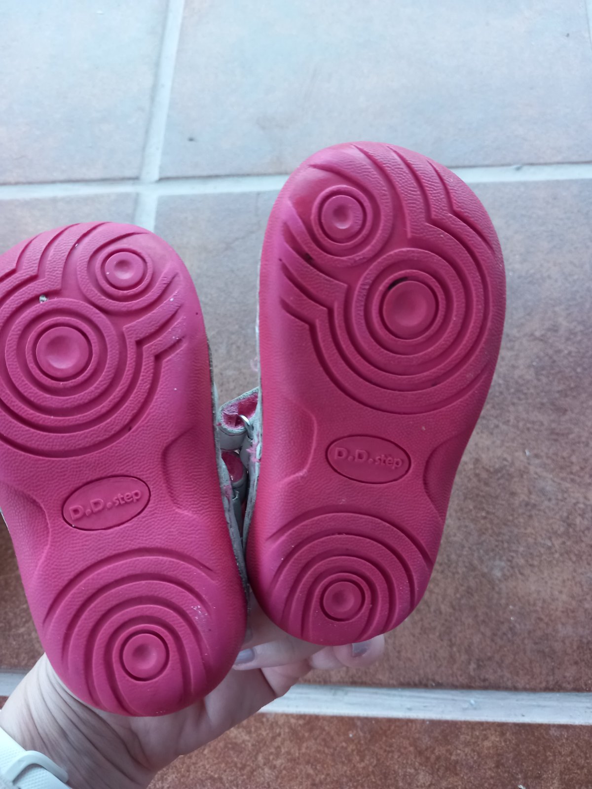 Predám nosene dievčenské sandálky D.D.step veľkosť č. 19, vnútorná dĺžka 11,8 cm. Zapínanie na suchý zips. Predne špičky trochu ošuchané.
