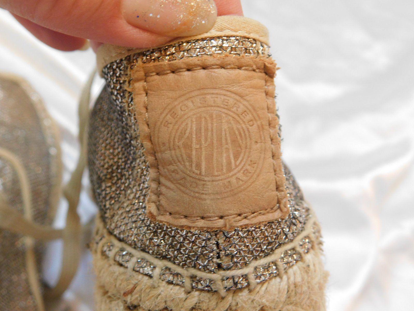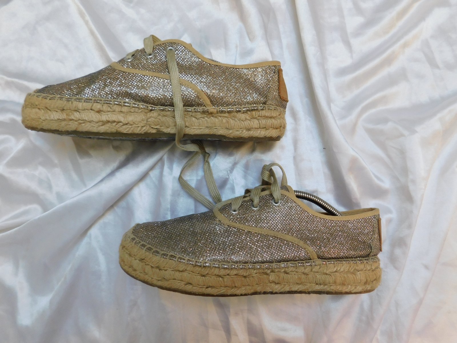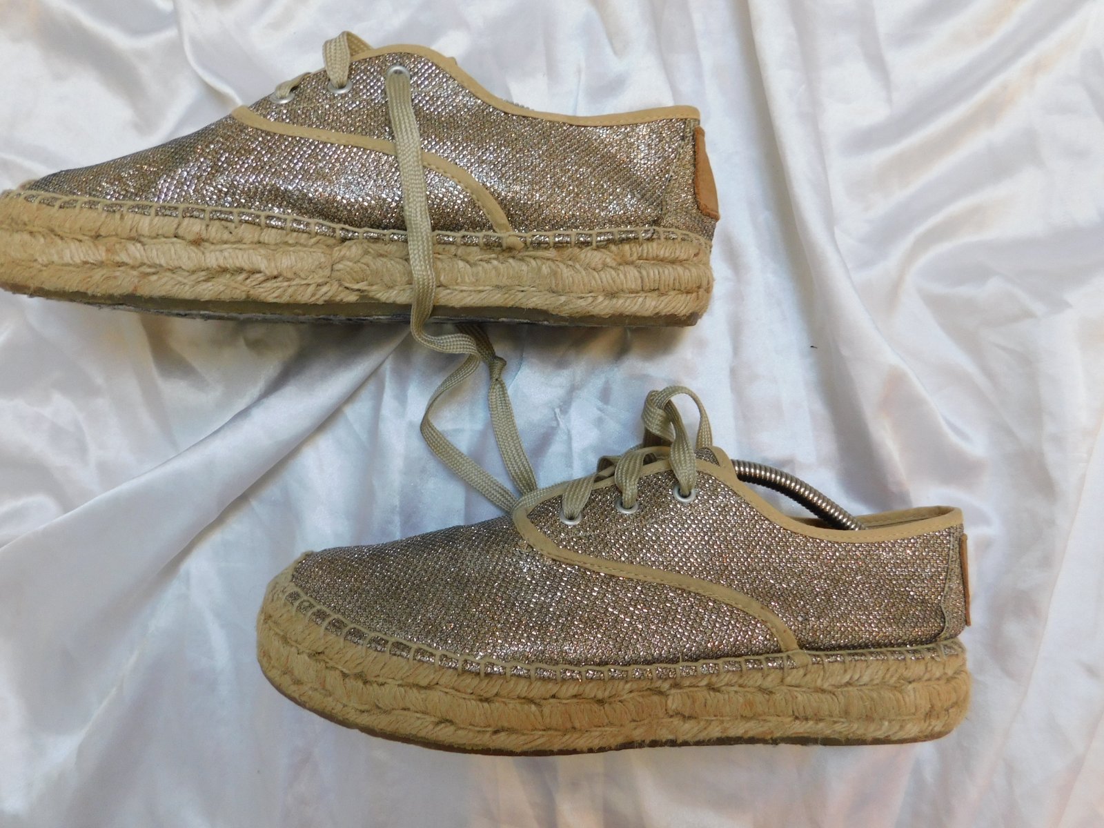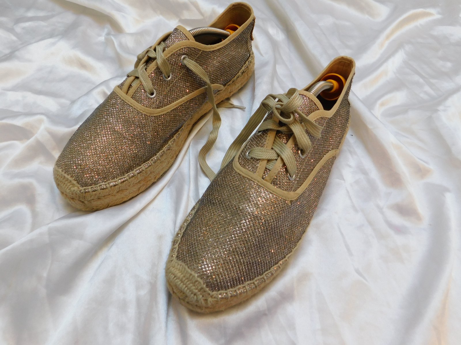 Trendy plátenky bežovo/ zlatej farby.bežne znamky nosenia,odfotene male poškodenie sietky.