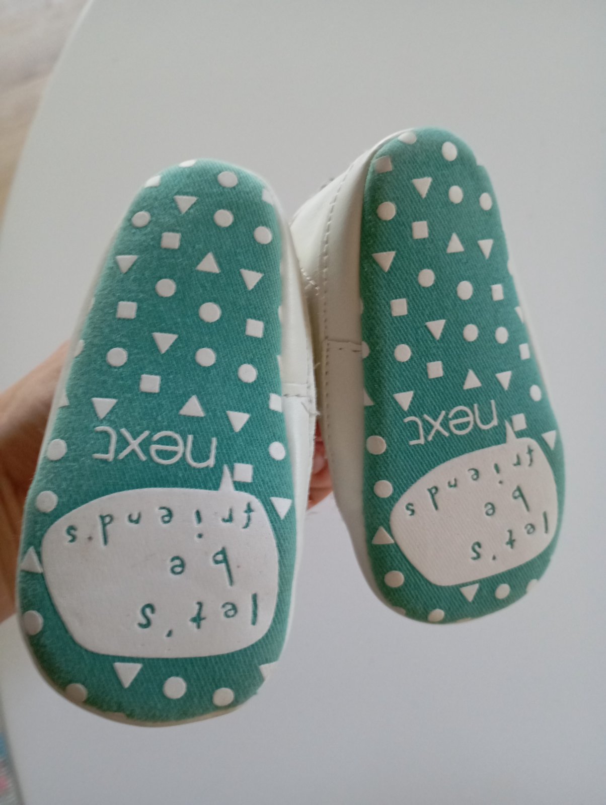 Veľmi pekný stav, ako nové, obuté iba v kočíku, asi 5x, bez poškodení, bez škrabancov Uvádzaná veľkosť - 1 VD 10 cm