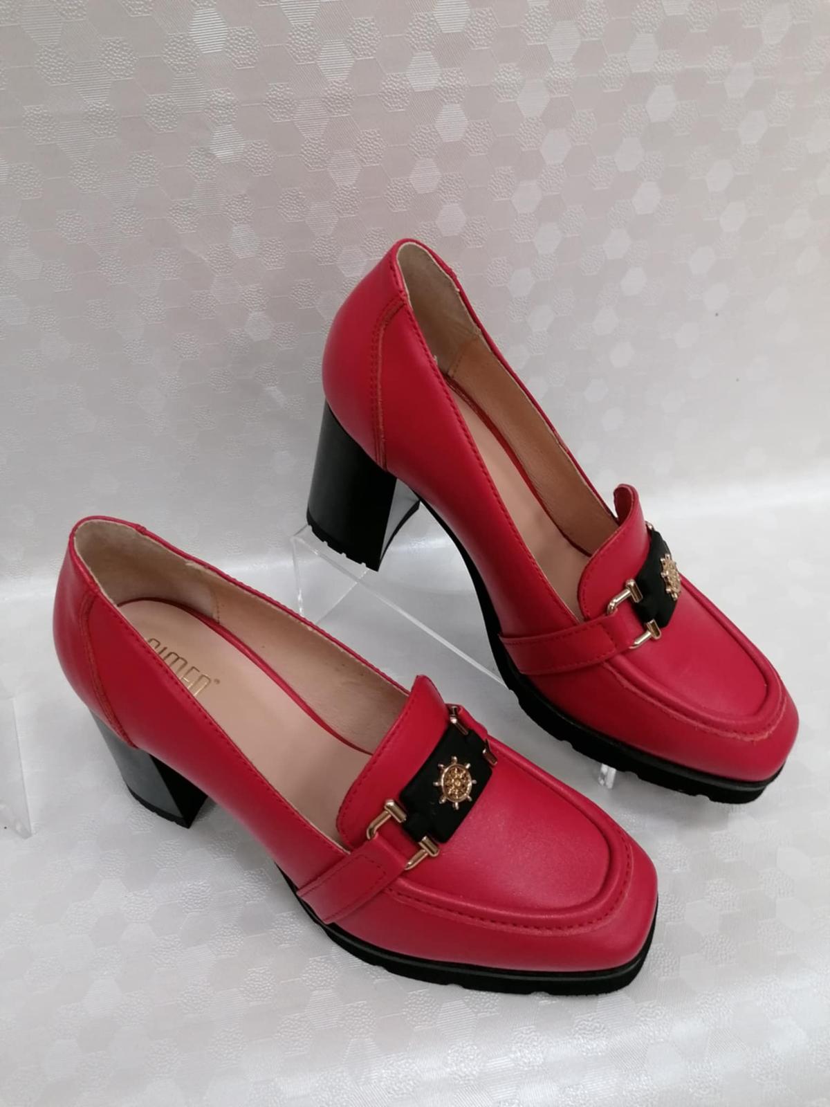 Výrazné elegantné lodičky v červenej farbe značky Simen. Tento kúsok zaručí, že budete na ulici neprehliadnuteľná. Lodičky sú vyrobené z kože, vďaka ktorej sa lodičky krásne prispôsobia k akémukoľvek chodidlu. Na prednej strane zdobí topánku zaujímavá aplikácia. Hrubý a mohutný podpätok zaručuje stabilitu a pohodlie pri chôdzi. Výrazná farba topánok osvieži každý jeden váš outfit. Kožená podšívka lodičiek zaručí maximálne pohodlie pri nosení. Tento kúsok určite zaujme aj tie najnáročnejšie ženy.