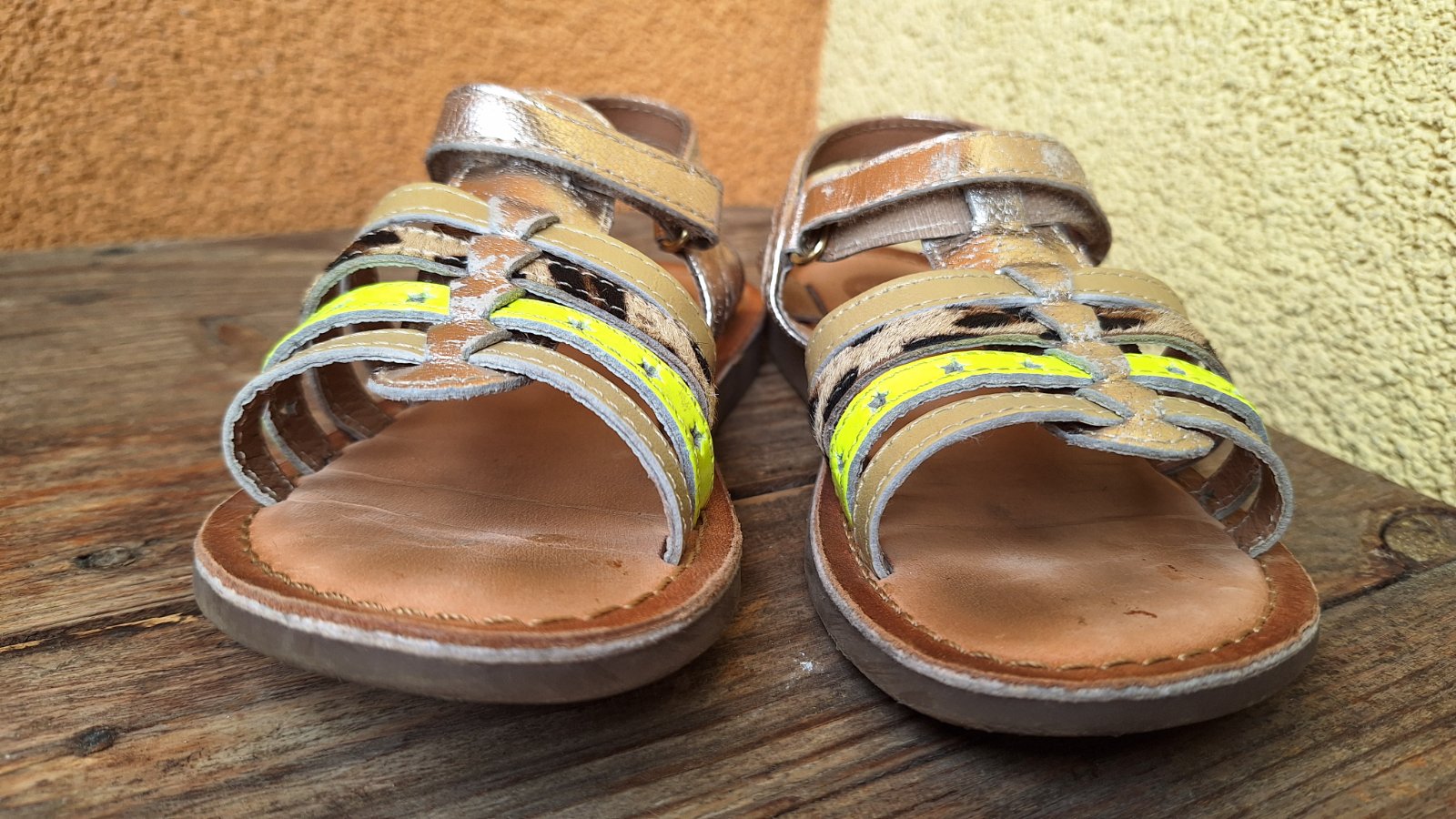Zn. GIOSEPPO, 2x príležitostne obuté, pravá koža, 1x neónovo žltý remienok, 1x remienok srsť, gumena podrážka