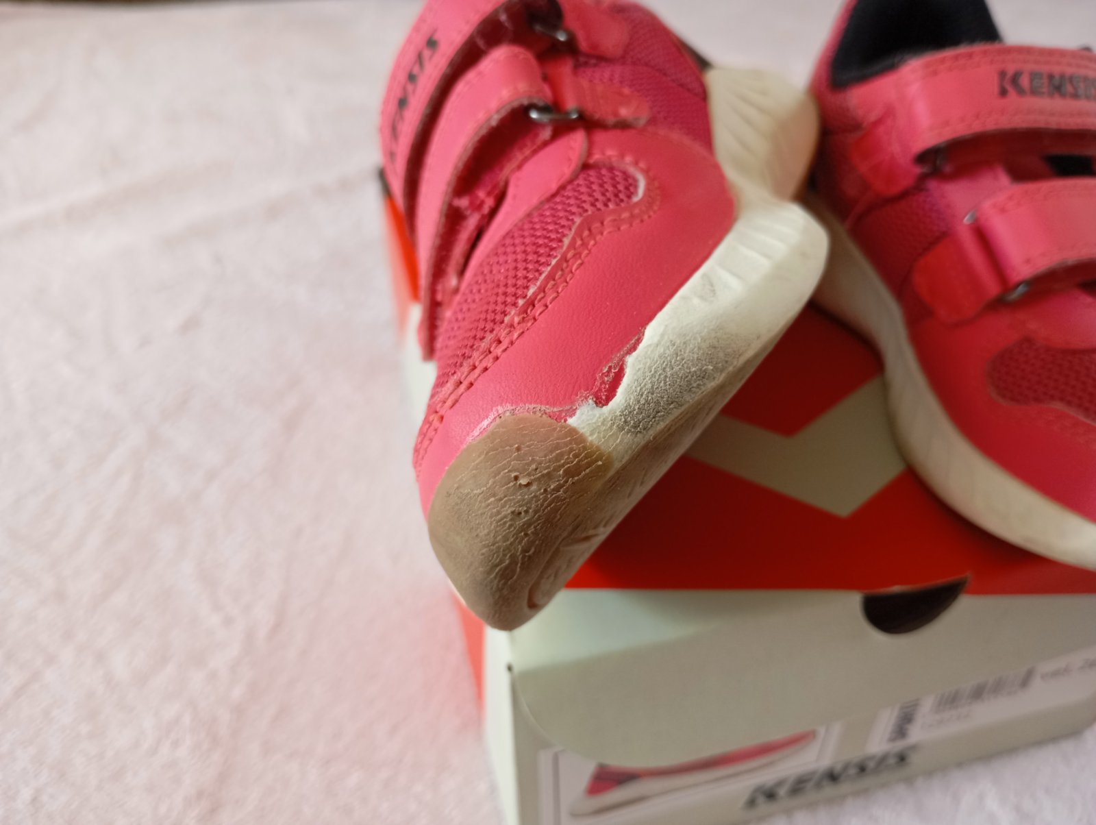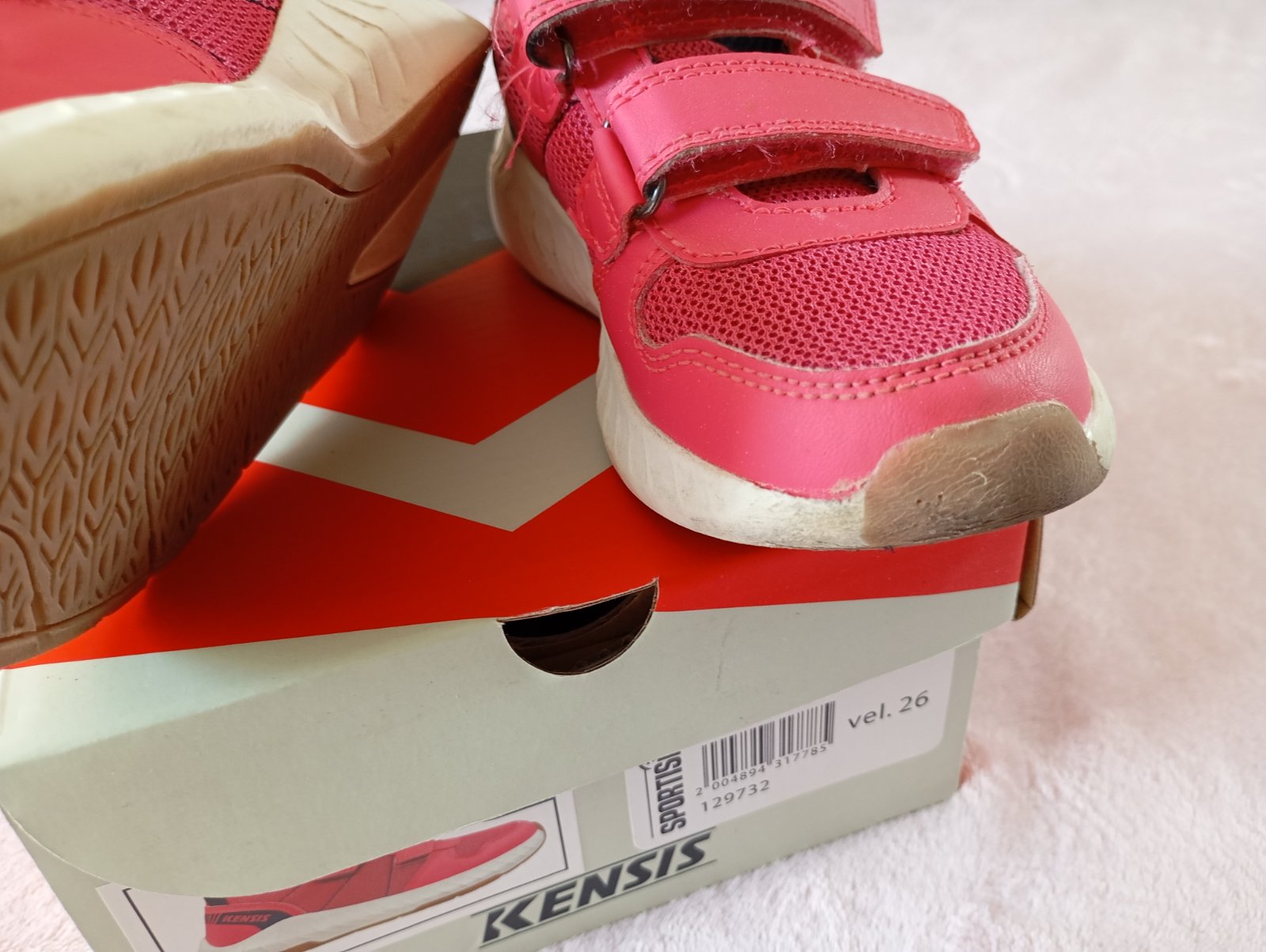nosené málo,ale na jednej podrážke je trochu odlúpané miesto,viď posledné foto,inak v poriadku