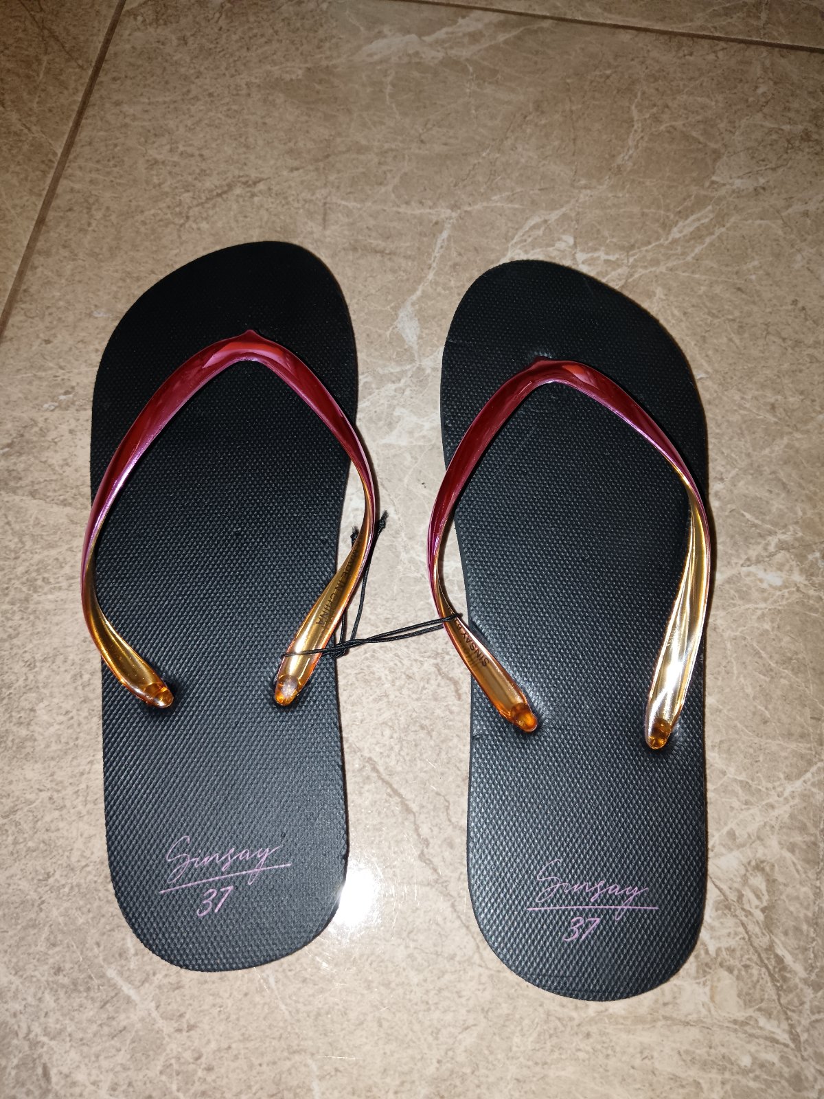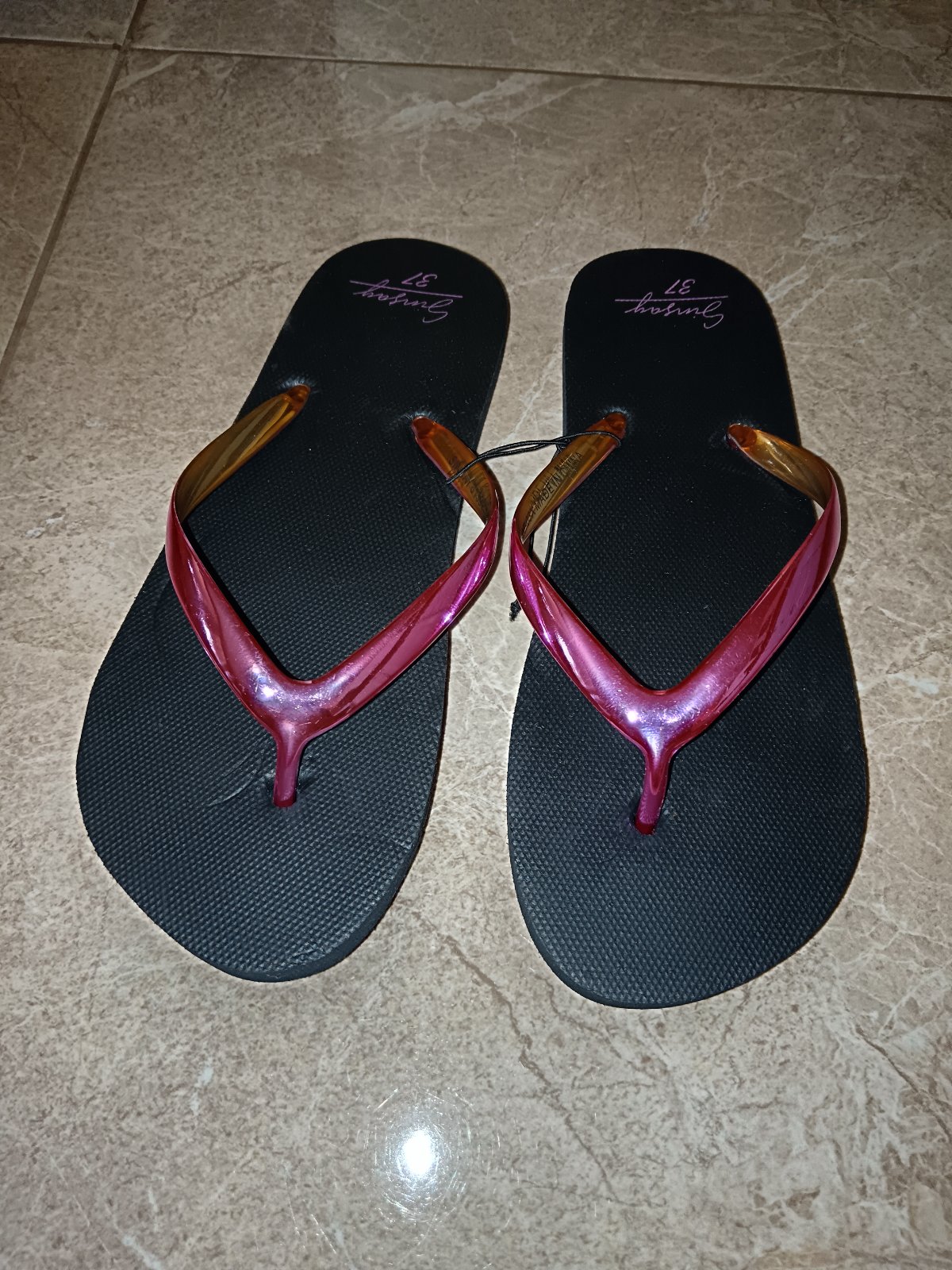 Predám krásne nové žabky. Velk. 37. Mne nesadla velkost. Su to klasicke makke gumene cierne slapky.