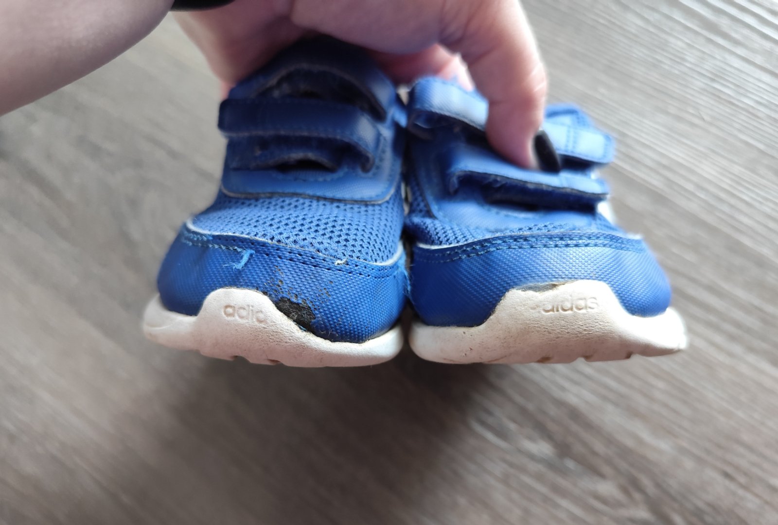 Predám modré Adidas tenisky, veľkosť uvedená 27. Majú ošúchané špice,viď. foto, lebo mládenec brzdil na odrážadle špičkami 🙈 nie sú ale deravé, je to len "kozmetická" vada.