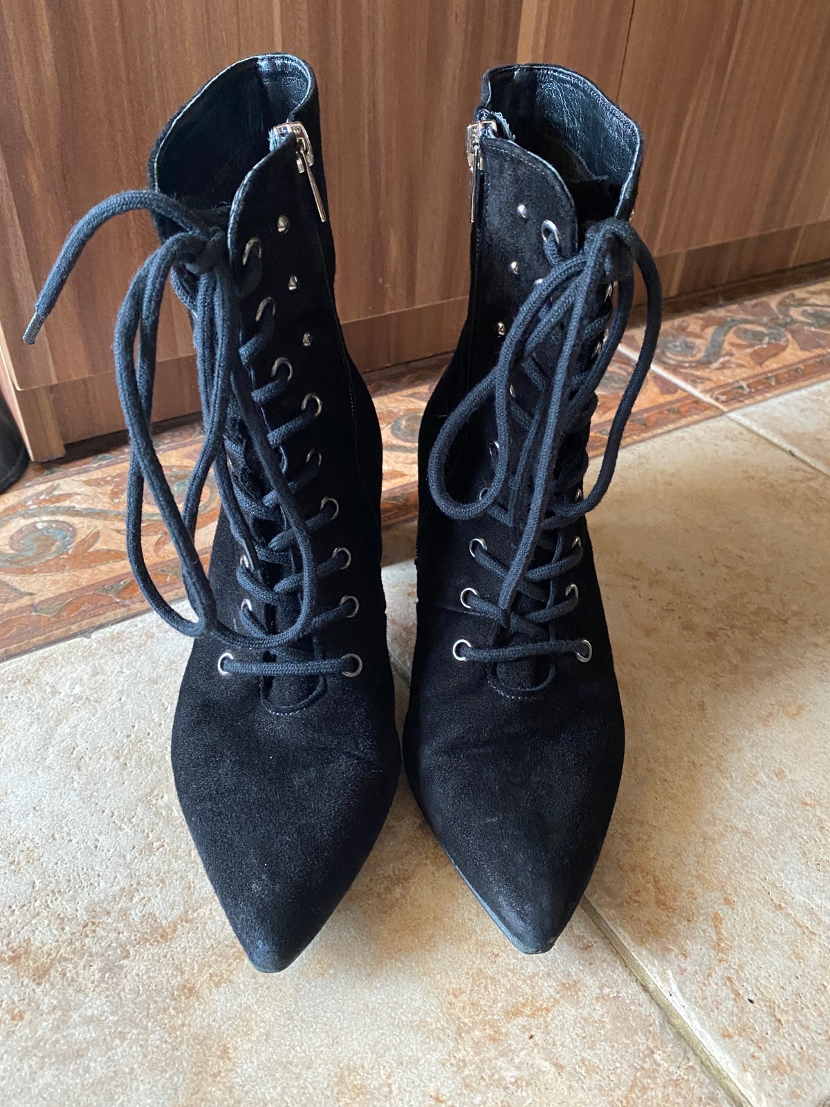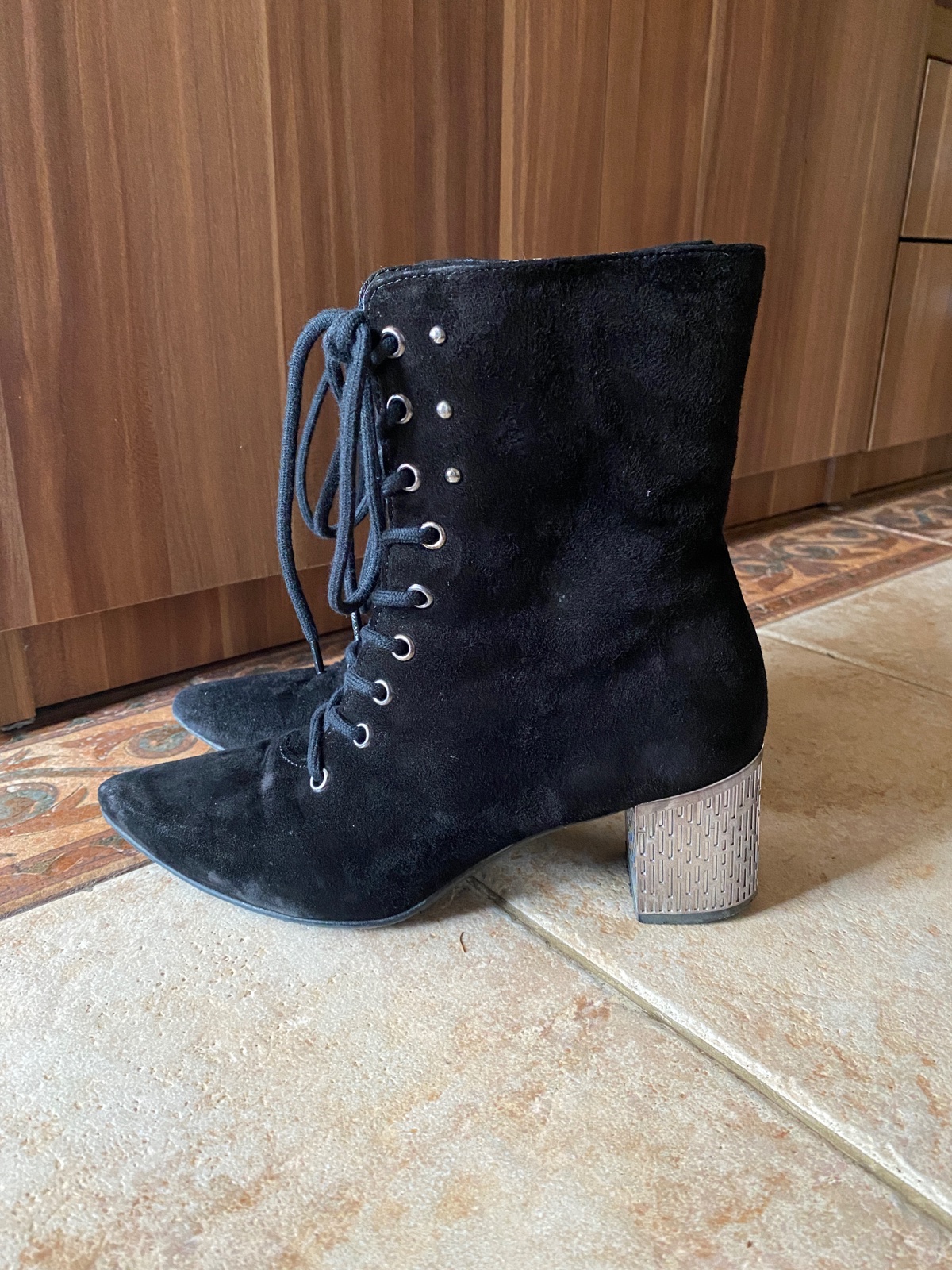 Sú v dobrom stave, boli párkrát obuté, veľkosť 36, sú veľmi pohodlné, vrchný materiál je brúsená koža. Viditeľné sú len bežné známky nosenia. Pôvodná cena bola cez 60€.