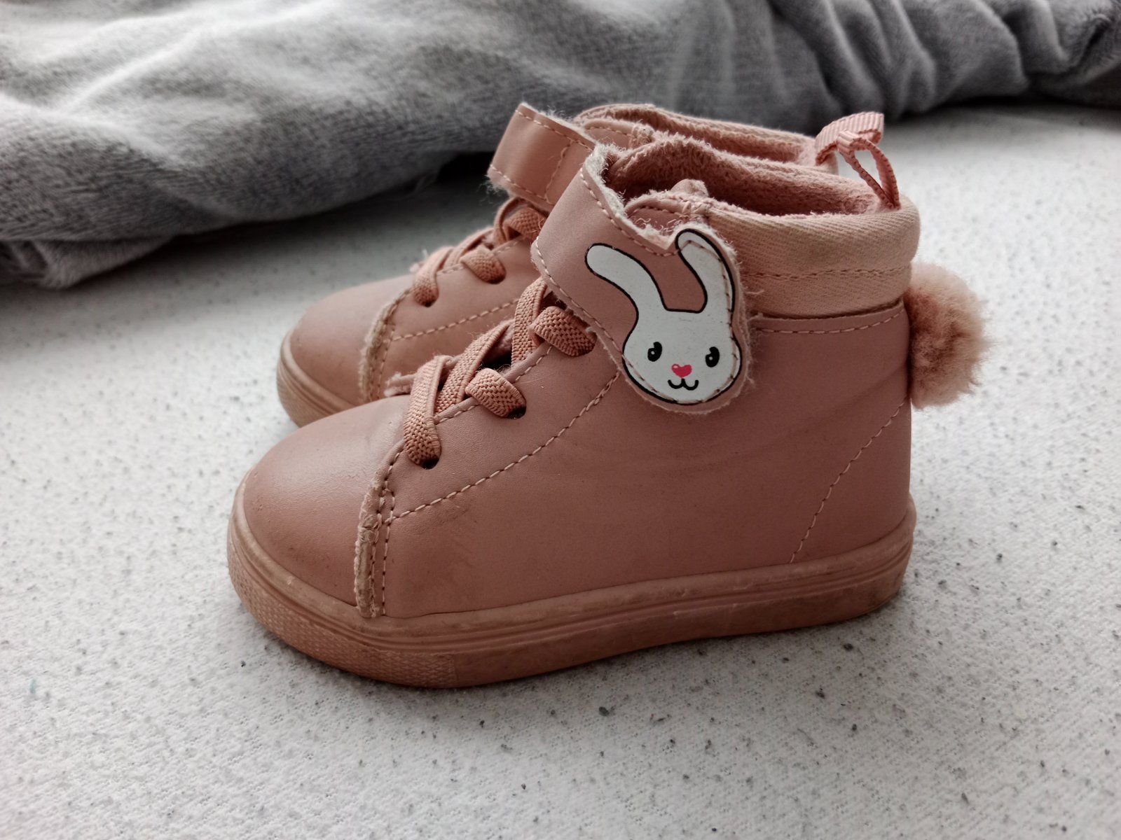 Predan clenkove tenisky pre malu paradnicu. Velkost 20, vnutorna dlzka 12,5 cm. Su vhodne na prve kroky ,nakolko spevnuju clenok dietatu. Maju mensie skrabnutie, ale splyva to s farbou topanky.