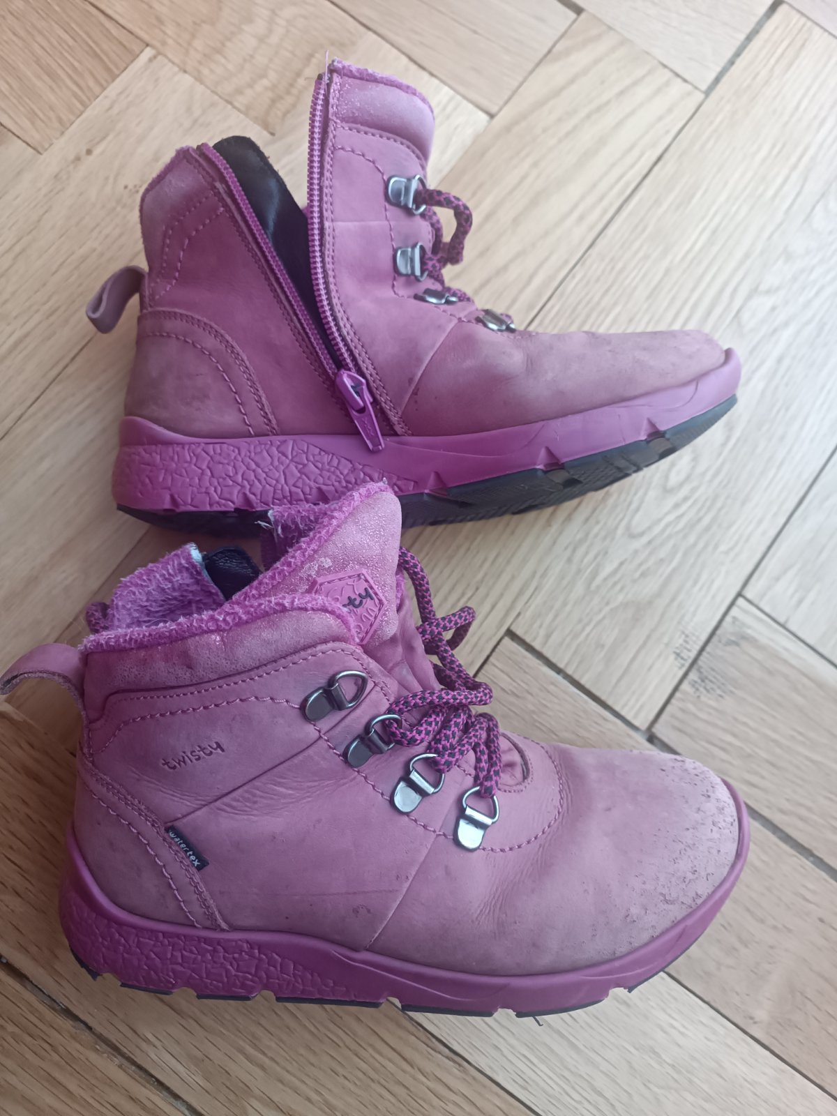 Čižmy sú zachovalé po dcére, vpredu sú na šnúrky, z boku zips, kupované v Ccc, teplučka doporučujem