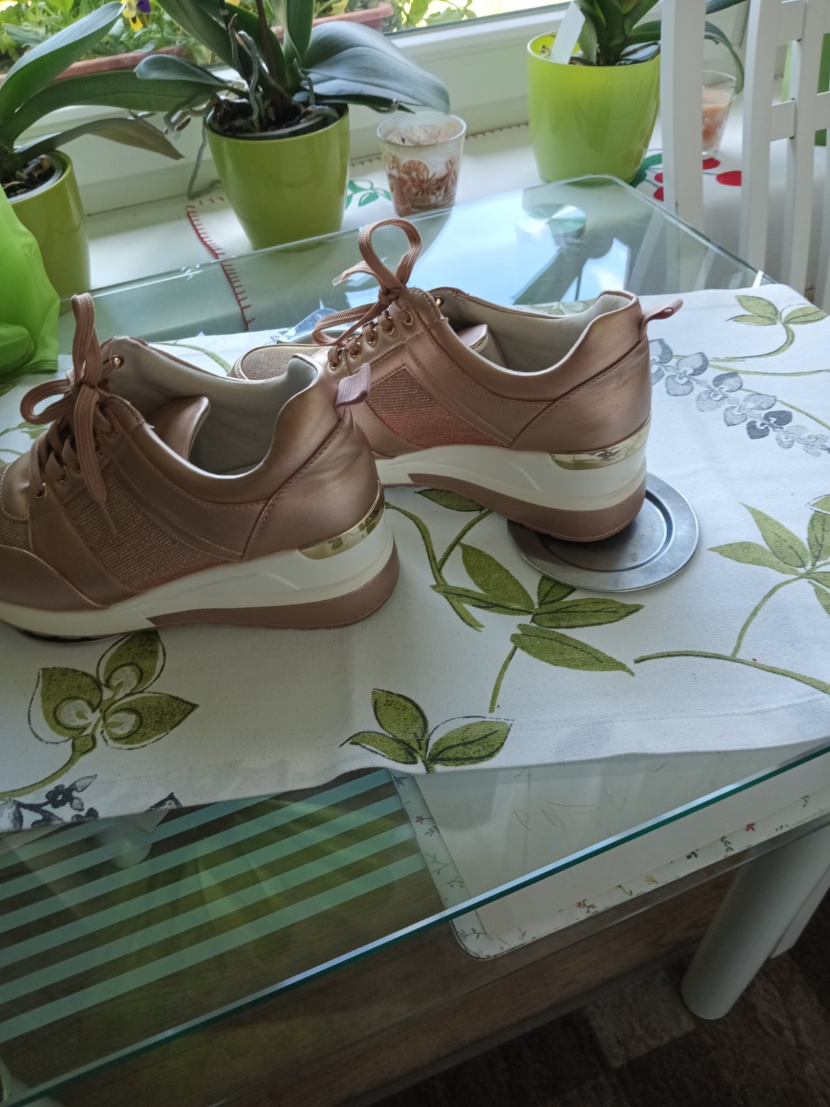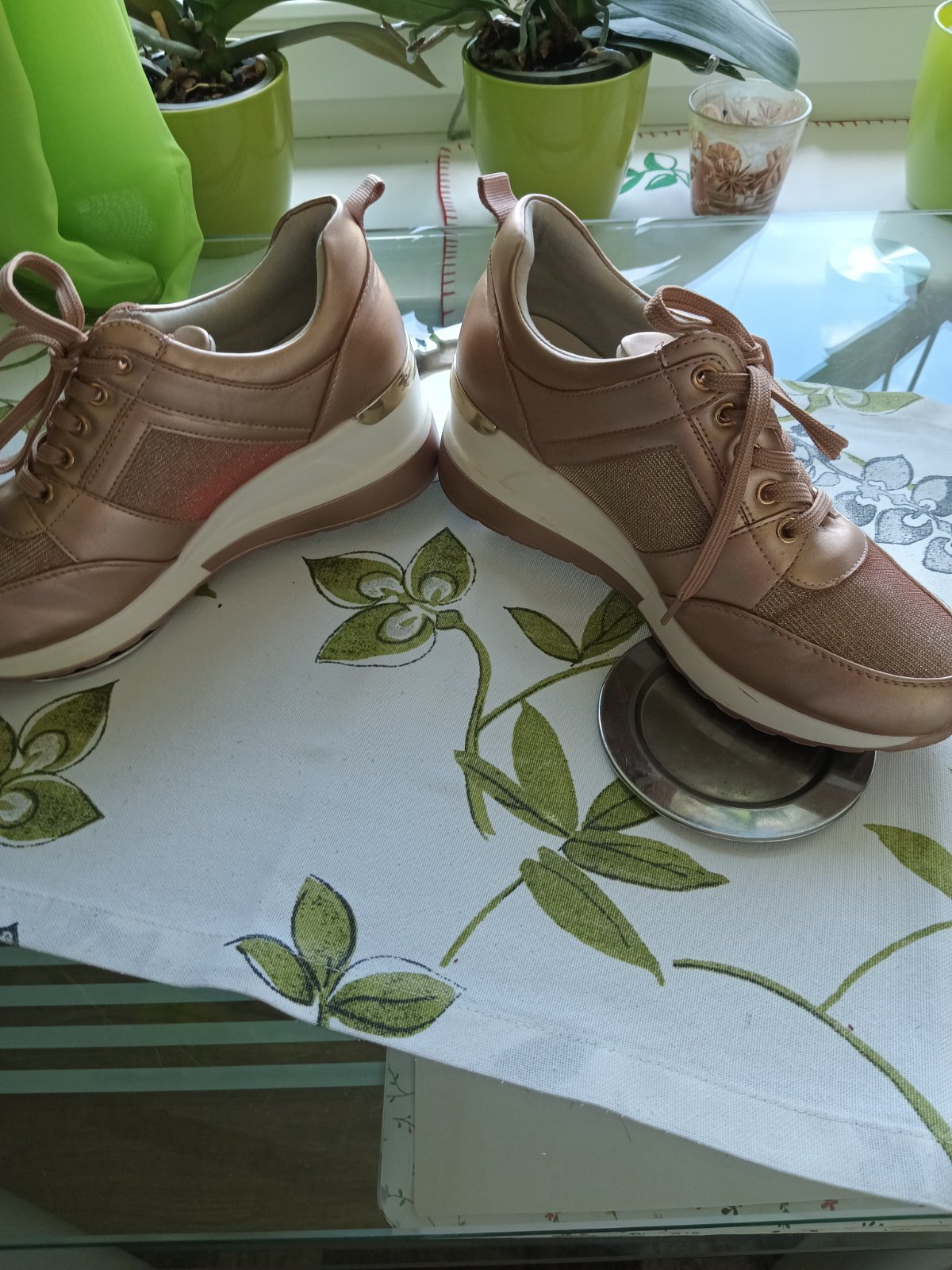 Predám tieto krásne tenisky, ktoré boli jedenkrát obuté na cvičení vo vnútri. Sú mi veľké, preto posúvam ďalej. Stav 10 z 10tich.