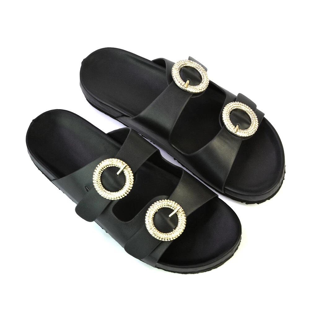 Krásne trblietavé dámske/dievčenské šlapky. Vyniknú na slnku alebo v interiéri s umelým osvetlením. Veľkosť: 36 Cena 12 EUR Značka: GINO ROSSI Farba: čierna so striebornými trblietavými remienkami ...