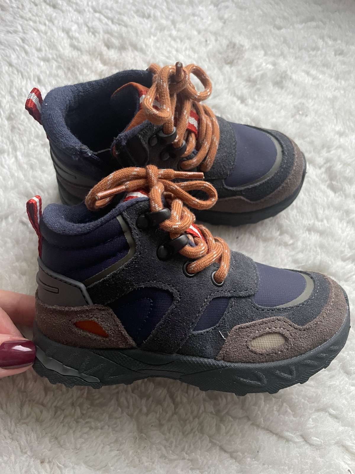 Kvalitne clenkove topanky na snurovanie i zips v modro hnedej kombinacii, vo velkosti 24, nove, nenosene
