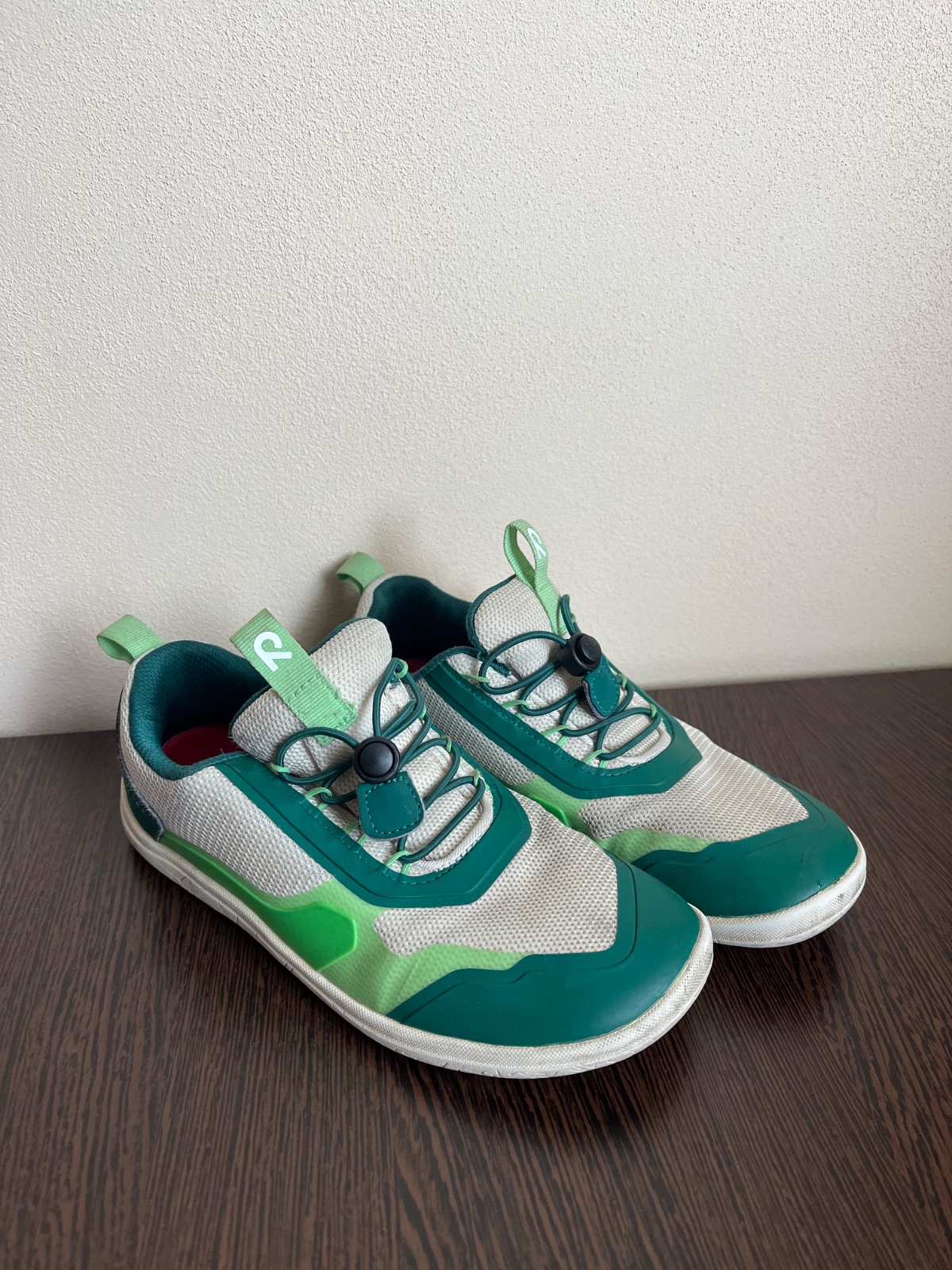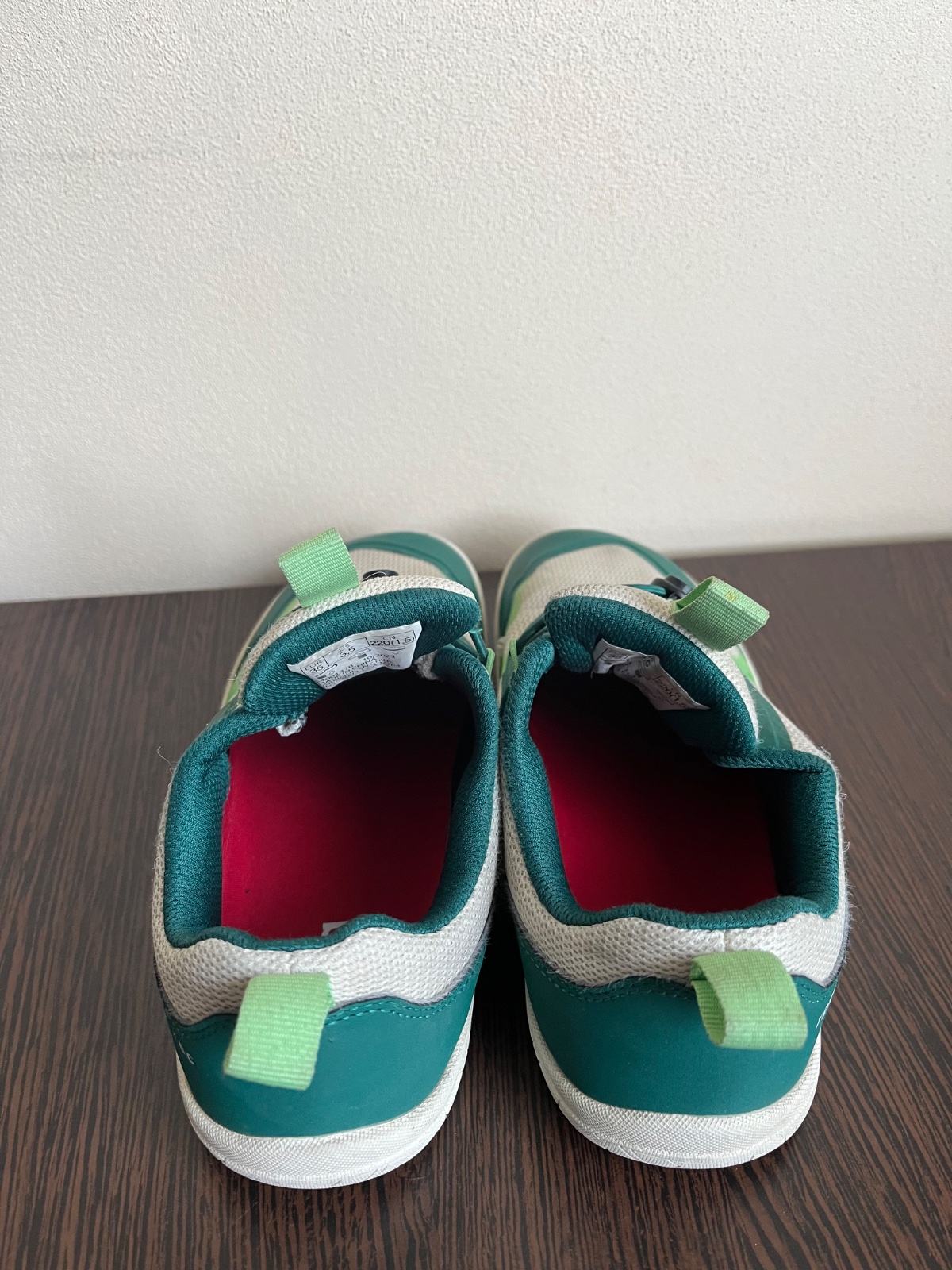 Tenisky nosené 1 sezónu na striedačku. Veľmi málo. Sú ako nové. Avšak tým že vrch je brusená koža tak vidno, že nie sú nové z krabice. Pri fotení som si všimla škrabanec s dcérkou v boku podrážky. ...