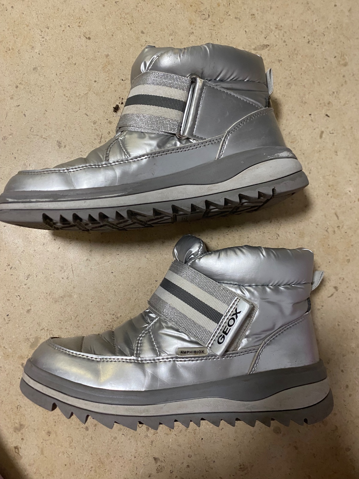 Predám po jednom dieťati veľmi zachovalé zateplené a vodeodolné čižmy zn. Geox, veľkosť 36. Vnútorná dĺžka 24 cm. Zapínanie: zips Cena 30 eur + poštovné