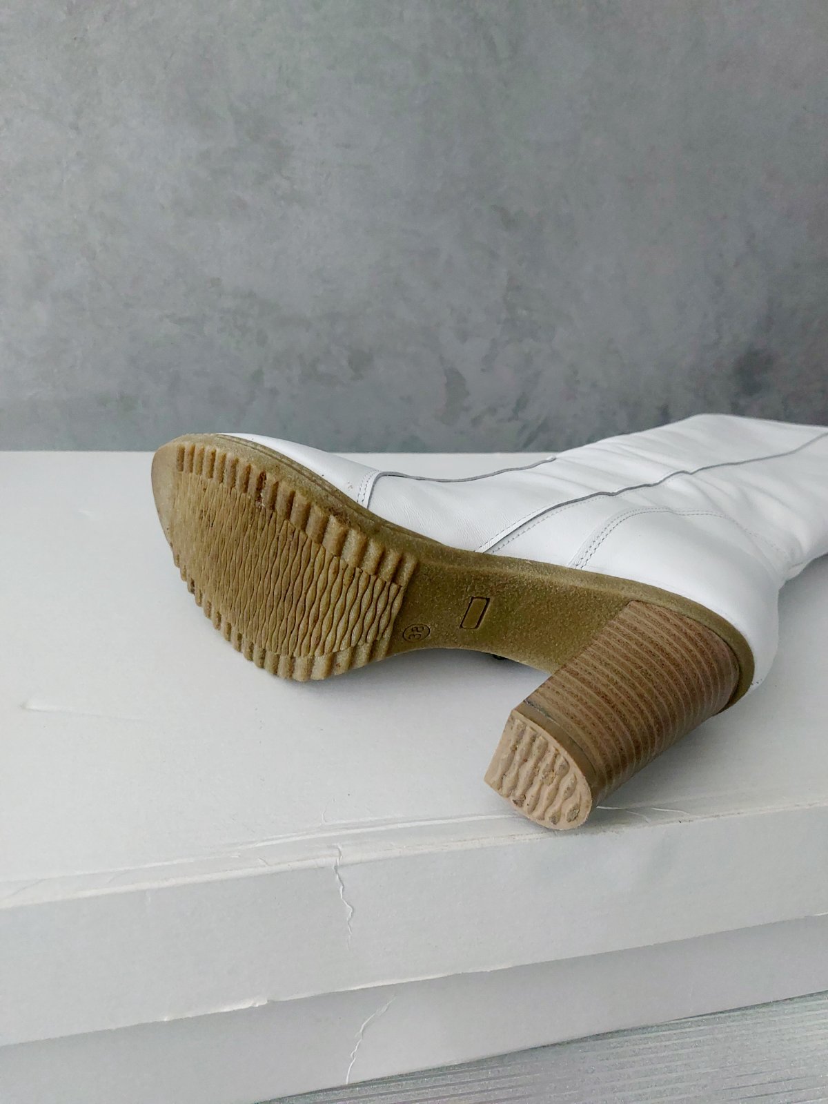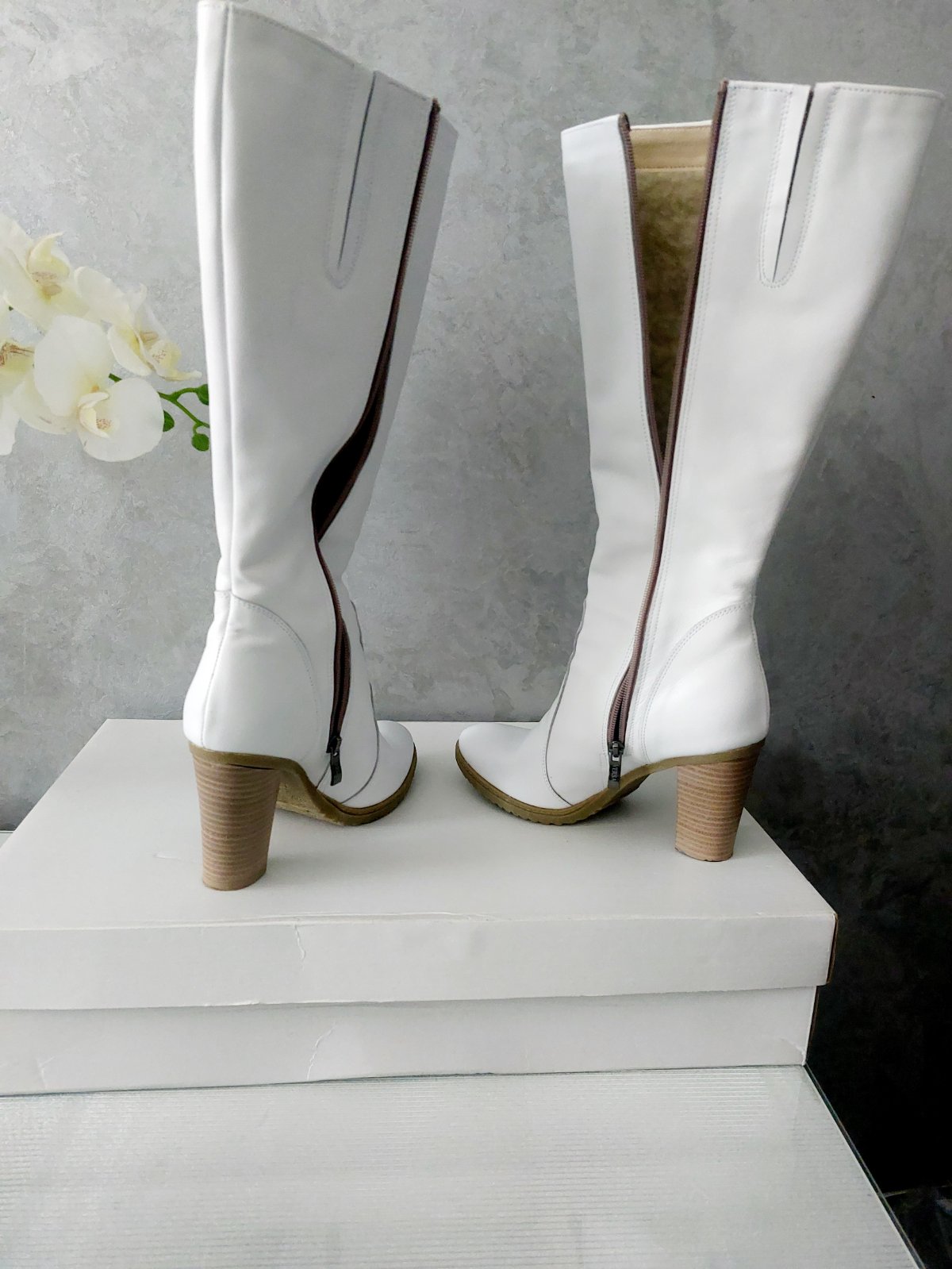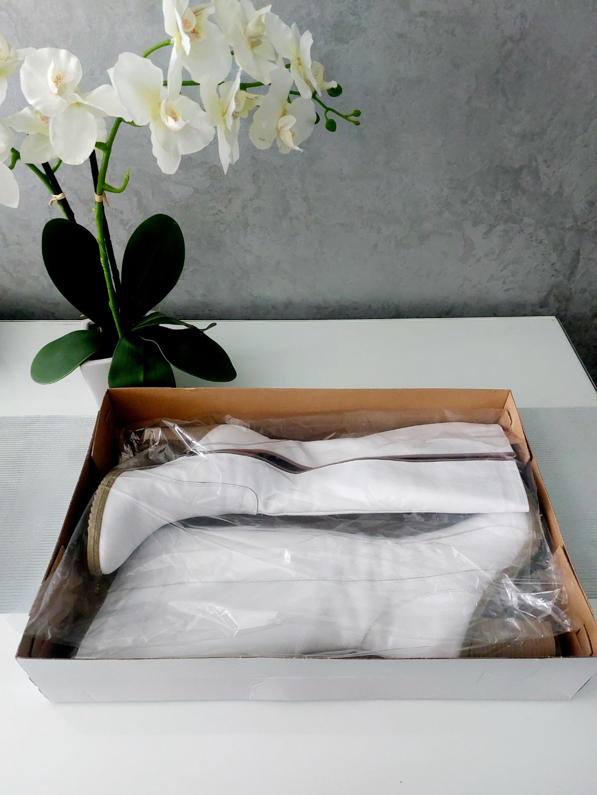 Top stav, bez poškodení, žiadne vady,nič, ako nové. Obuté možno 2x. Vhodné skôr na úzke lýtka. Majú síce gumu na roztiahnutie, ale pre pohodlie radšej pre štíhle nohy.