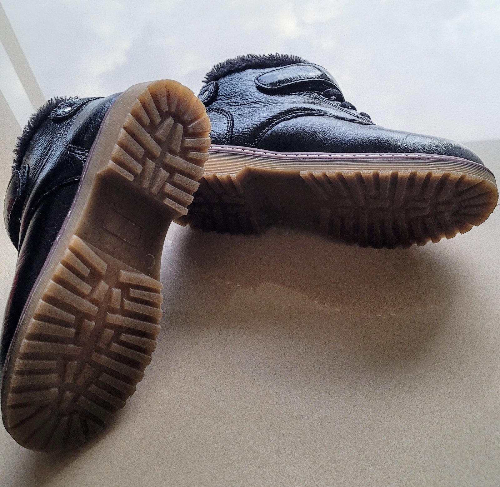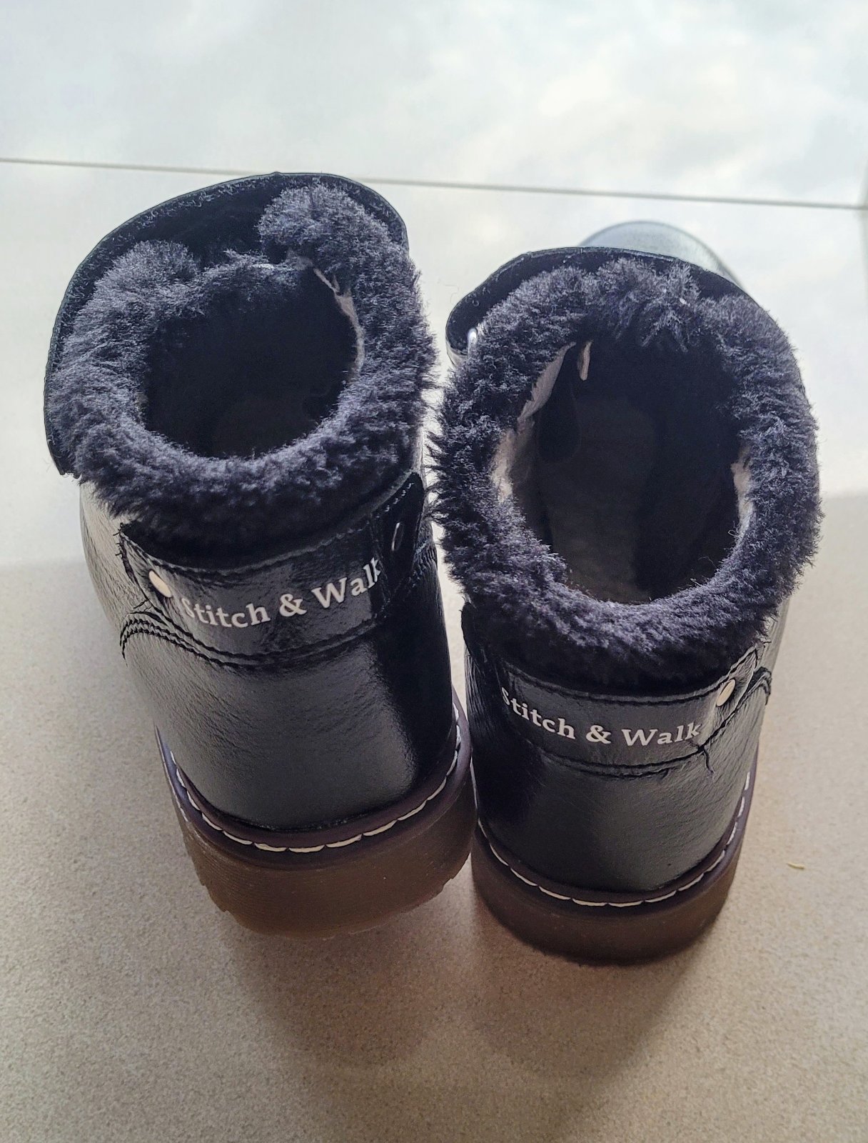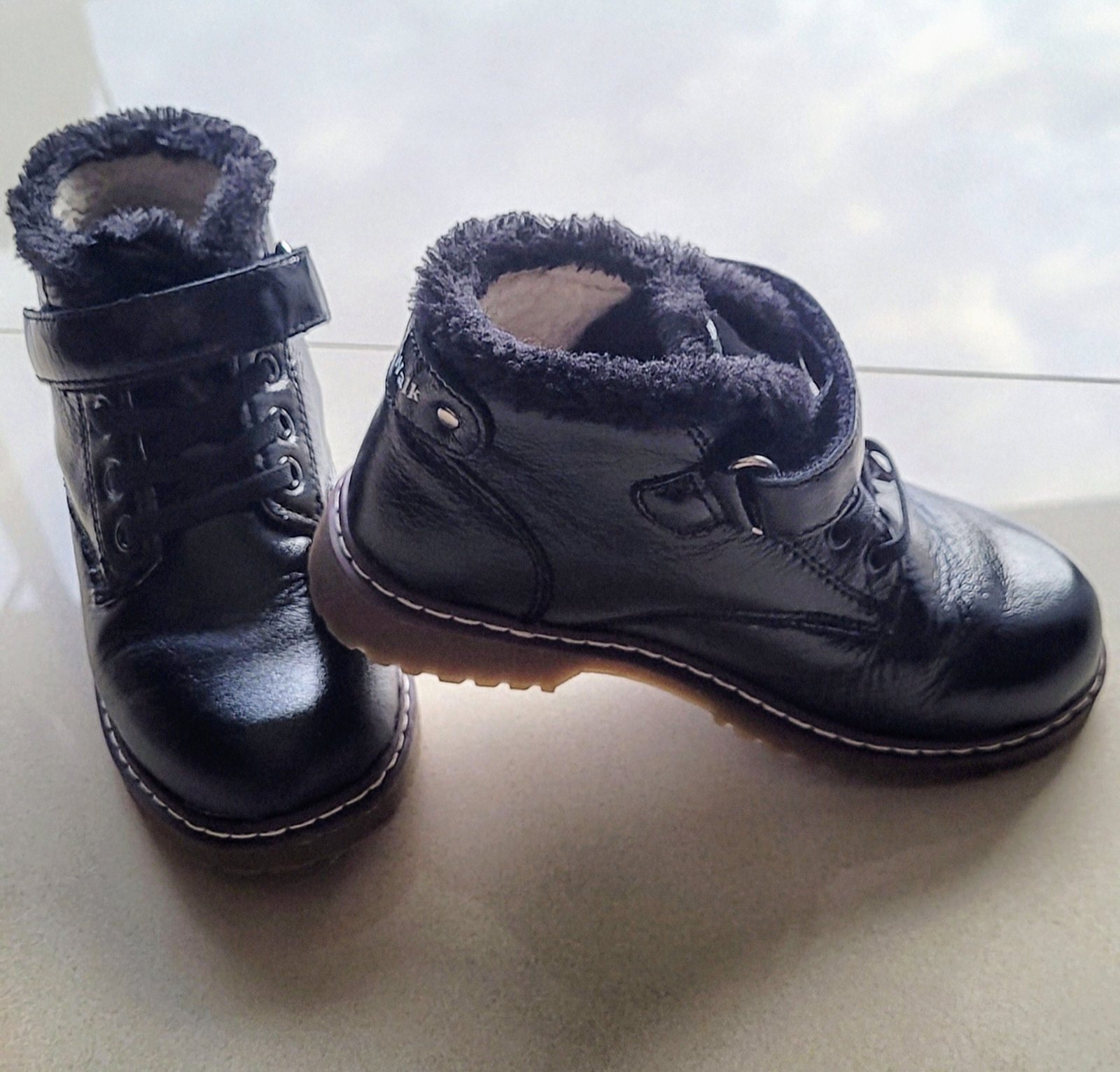 Celokožené, zateplené, zapínanie na suchý zips.