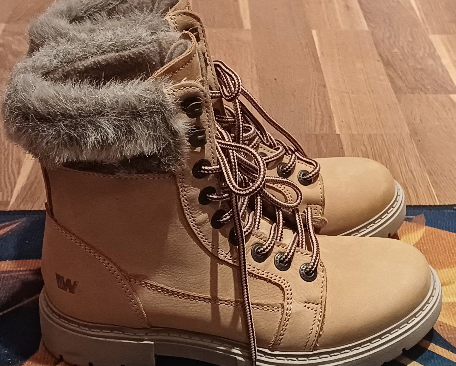 Ponukam krasnu zimnu vychádzkovu členková obuv na šnurovanie zn.Weinbrenber. Ide o český výrobok. Obuv je vyrobená z pravej prírodnej kože. Vnútorná časť je vyteplená filcovou podšívkou. Vyska podpatku je 3 cm,vyska topanky je 18 cm. Vnutorna dlzka je 24 cm,velkost 36, nenosené. Povodna cena 75 eue.