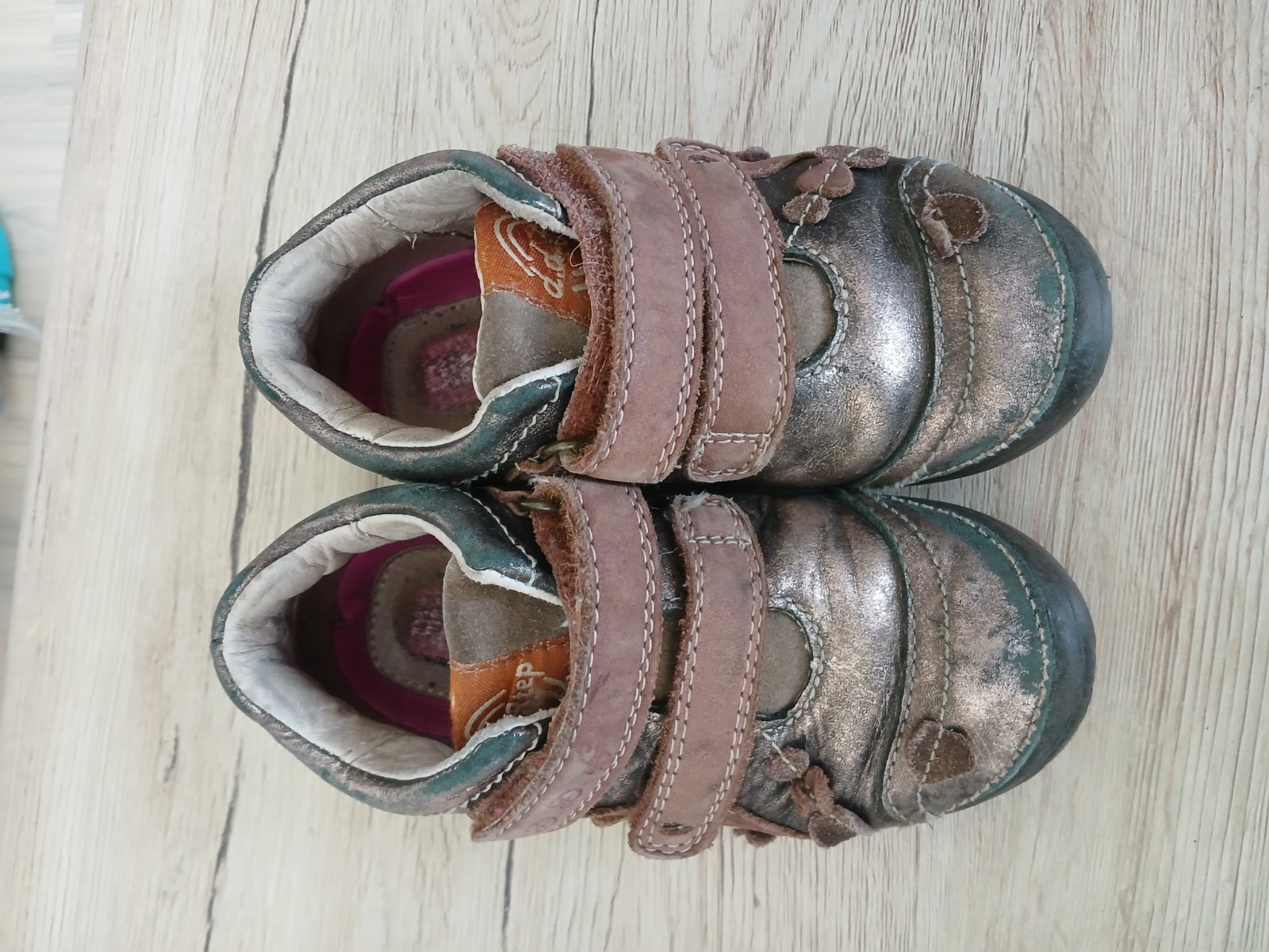 Predam kozene topanocky znacky D.D.Step, velkost 26. Farba svetlosiva s ruzovou. Topanky su v peknom nosenom stave, vycistene, plne funkcne.