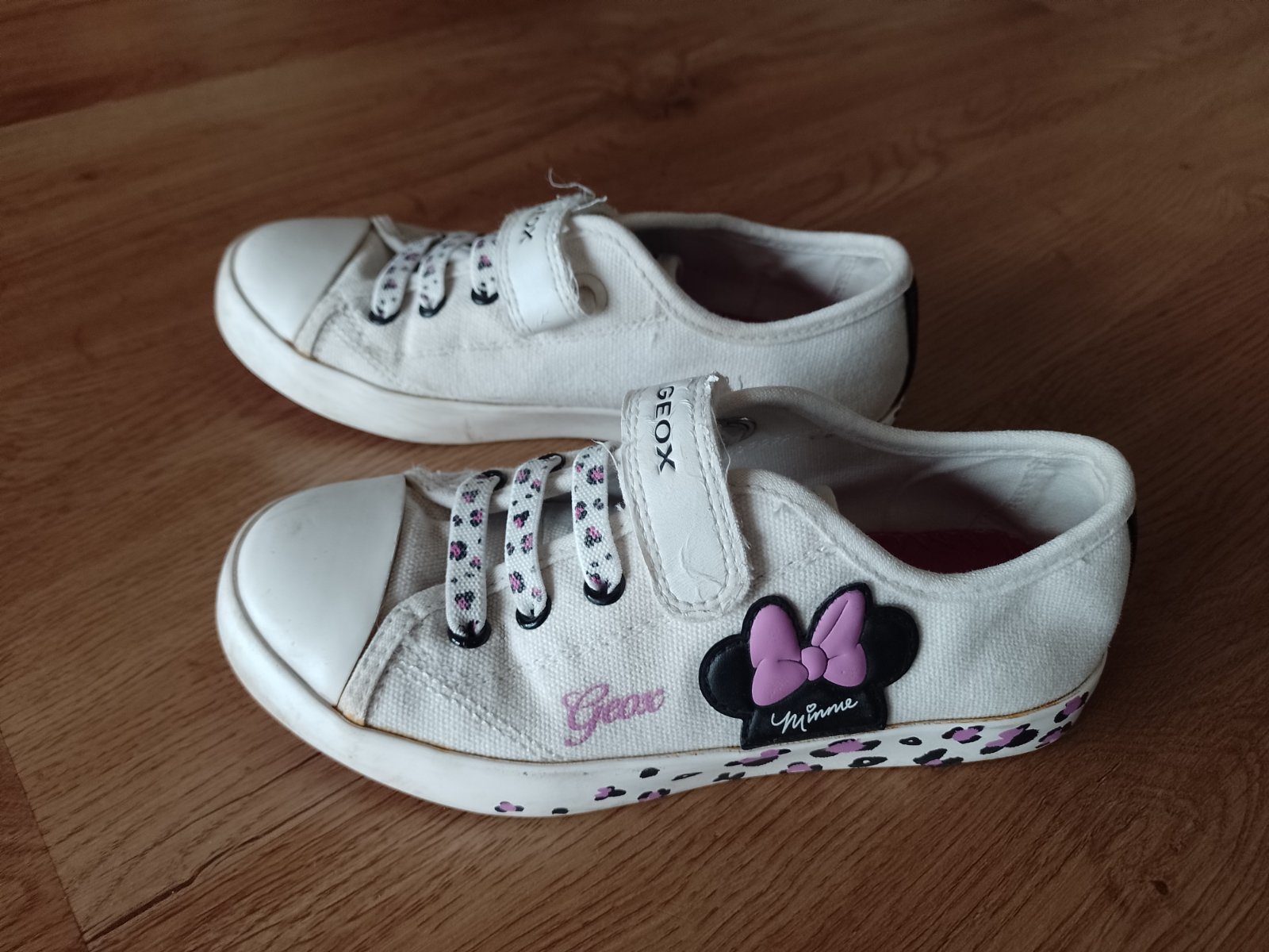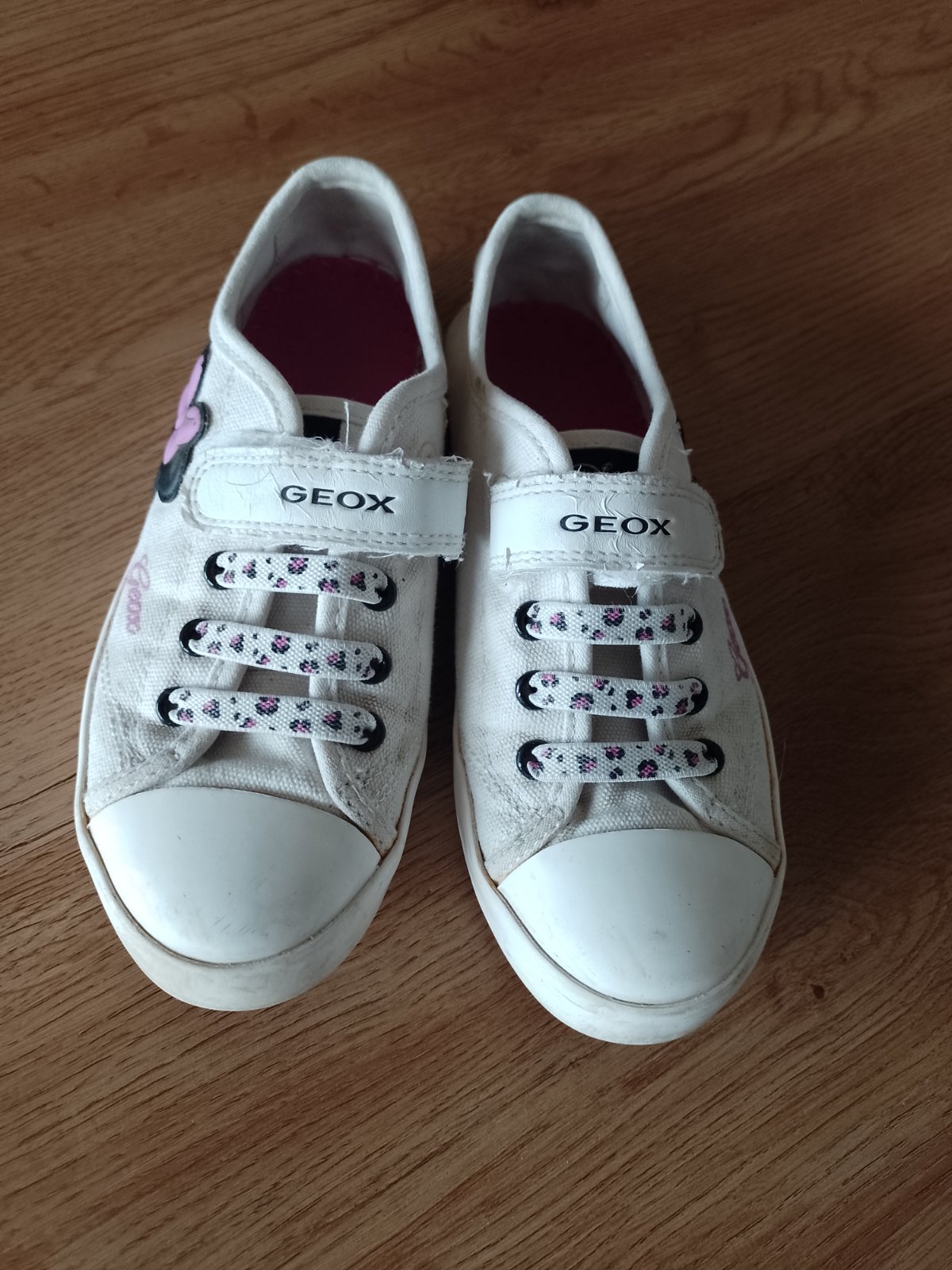 Posúvam prekrásne tenisky ozdobené kvietkami , čipkou a perličkami znacky GEOX. Pôvodná cena vysoká . Boli obuté asi 3x potom dcerke narástla noha tak sme viac nestihli. V super stave bez poškoden...