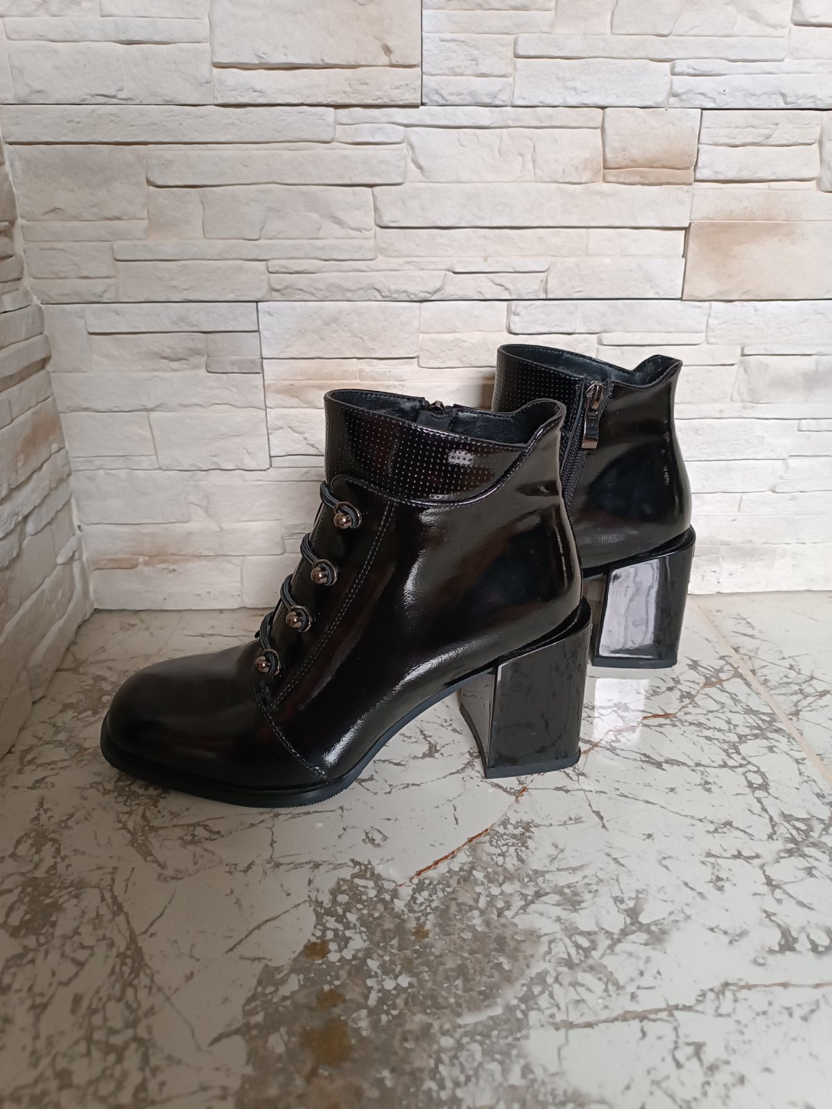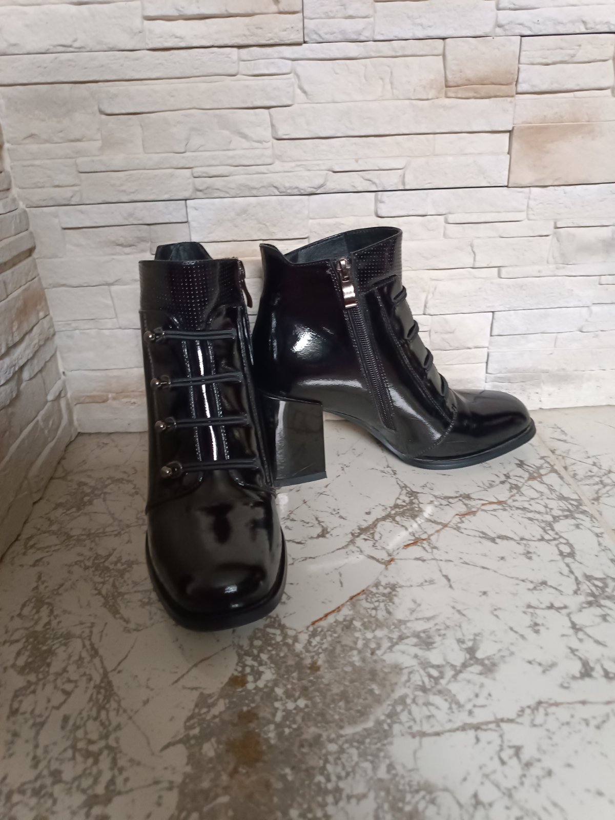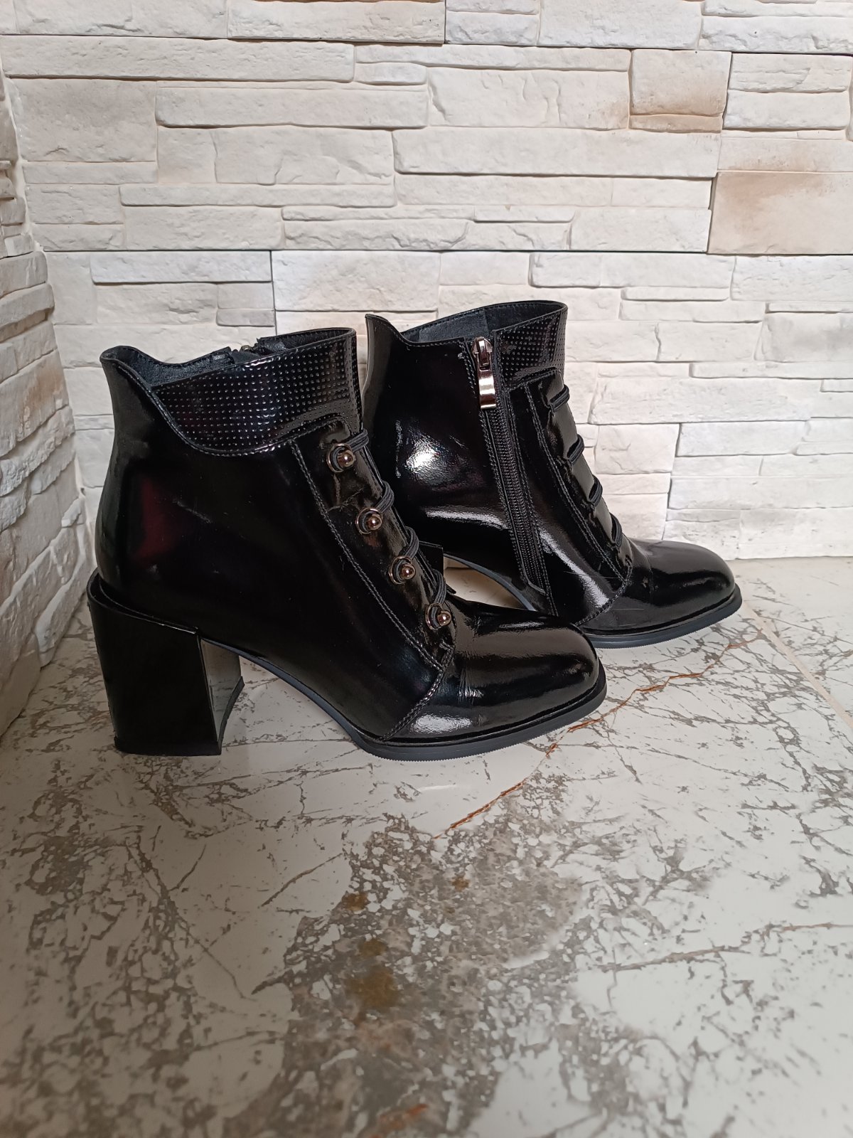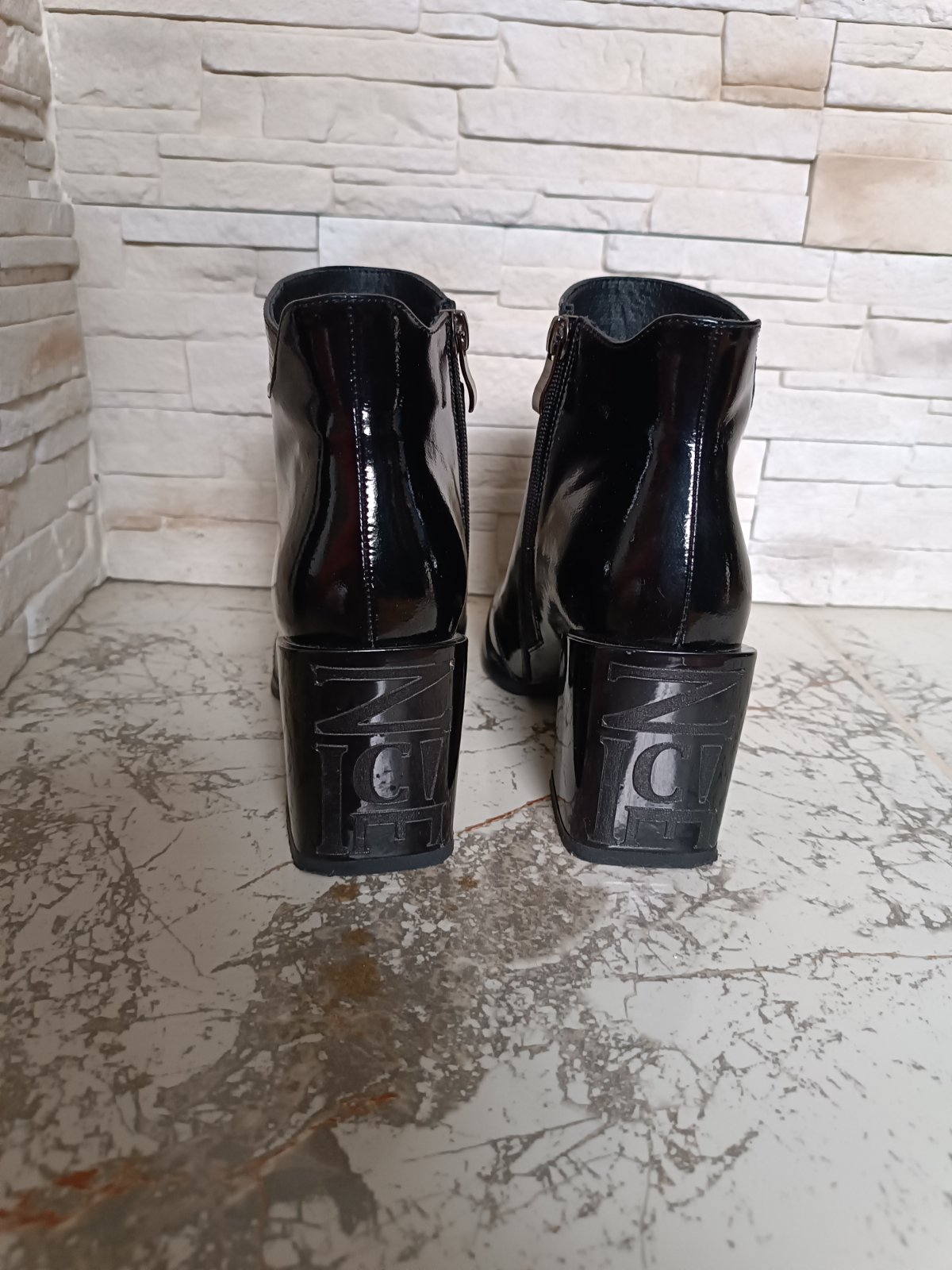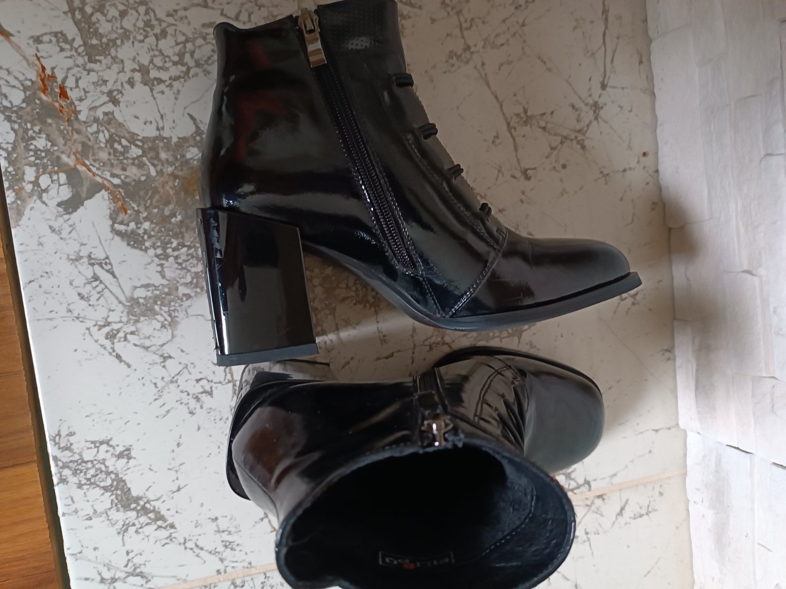 Pravá koža! Lesklá čierna. Maximálne zachovalý stav -ako nové (nosené pár krát). Vnútorná dĺžka 24 cm. Výška podpätku 8 cm. Objednané z internetového obchodu Filipo.