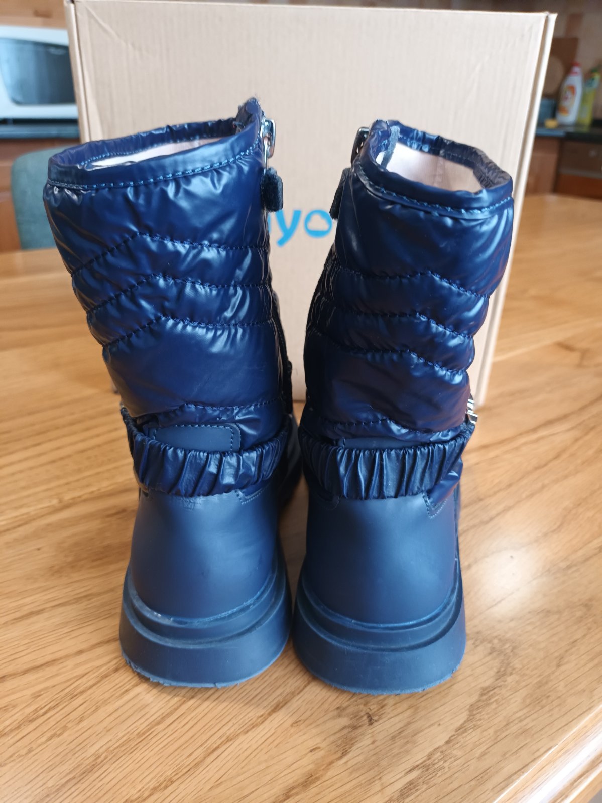 Dievčenské čižmy modrej farby, vo veľmi dobrom stave. Nosené jednu sezónu. Bez poškodenia. Cena 7 eur plus poštovné.