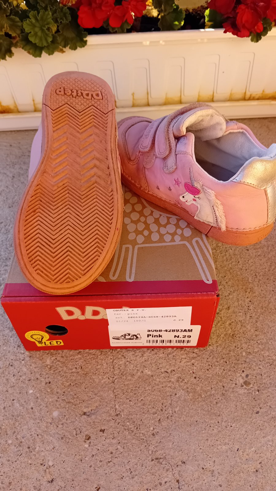 Predám kožené dievčenské D.D. step barefoot topánky. Nosené, bez poškodení. Vd 18.6cm, vš 7cm. Cena 12€ plus poštovné.